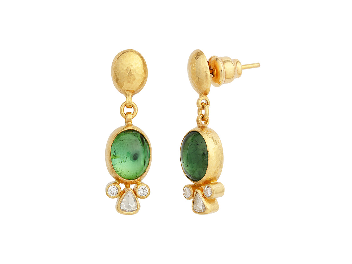 GURHAN Rune Gold Single Drop Earrings, 10x8mm Oval, Post Top, Tourmaline and Diamond