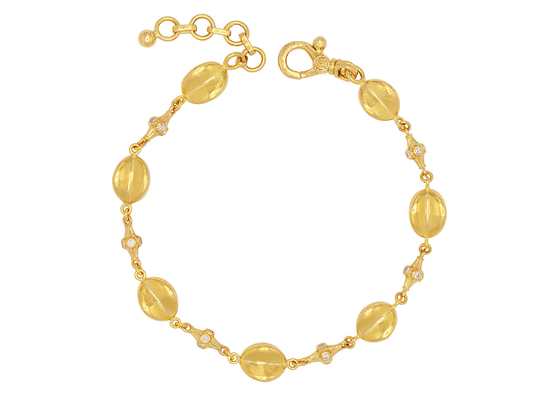 GURHAN Spell Gold Station Single-Strand Bracelet, Round "X" Beads, Diamond