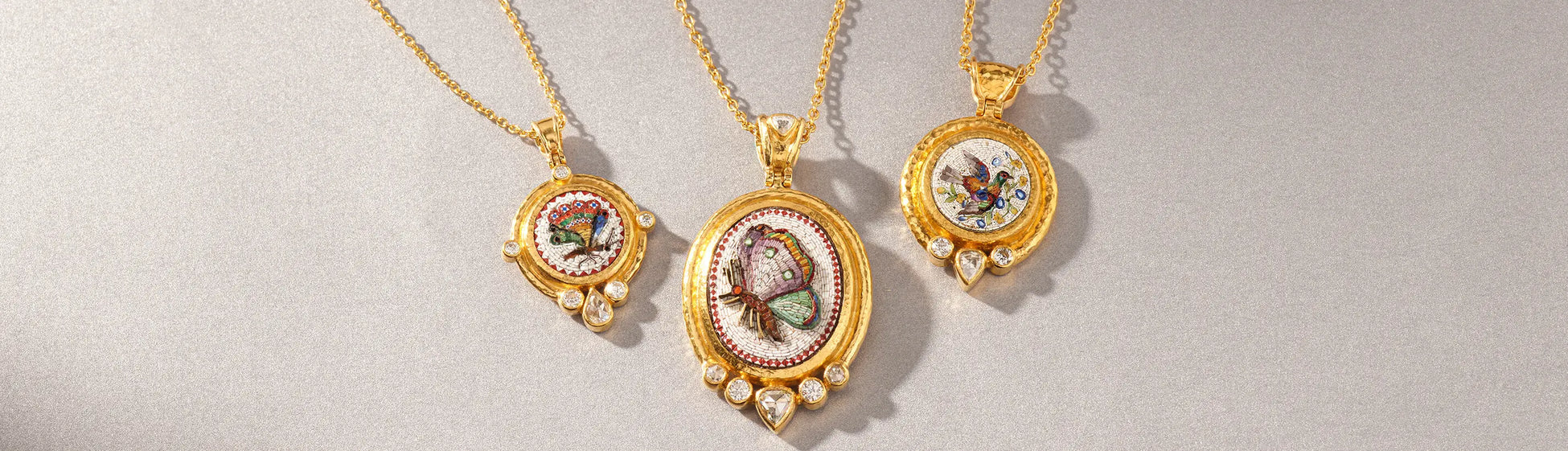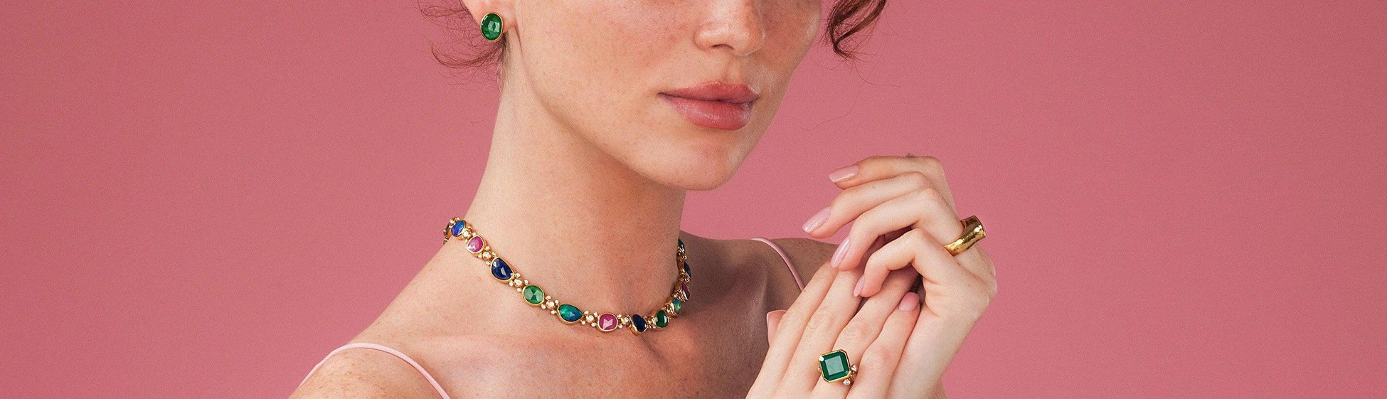 Our one-of-a-kind designs—from vibrant turquoise and statement jewelry with colorful gemstones to luminous Edison pearls, ancient-inspired intaglios, protective luck beads, intricate micro mosaics, brilliant sapphires in every hue found in nature, stunning green tourmaline and tanzanite suites, and our signature high-karat gold chain necklaces and link bracelets—channel this elemental inspiration, each design a testament to nature's generosity and our artisans' reverence.