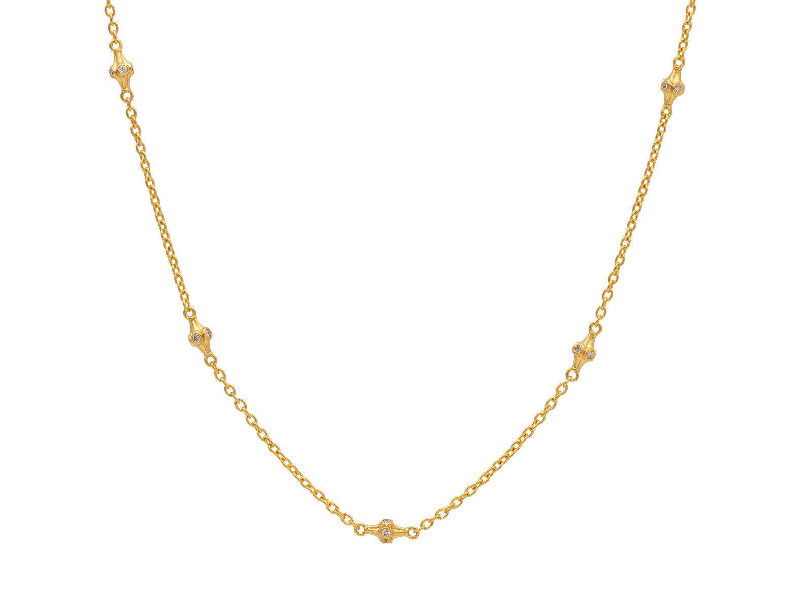 GURHAN Spell Gold Diamond Station Short Necklace, Delicate Chain