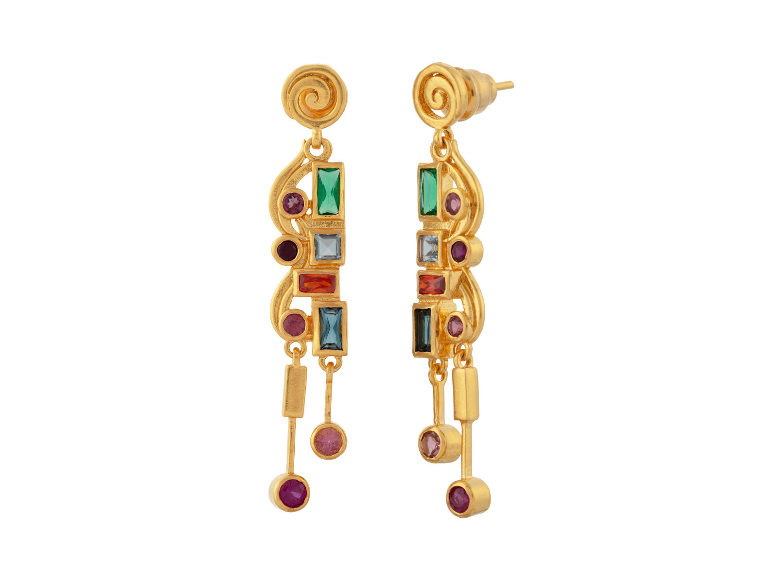 GURHAN Embrace Gold Mixed Stone Long Drop Earrings, Small Spiral on Post