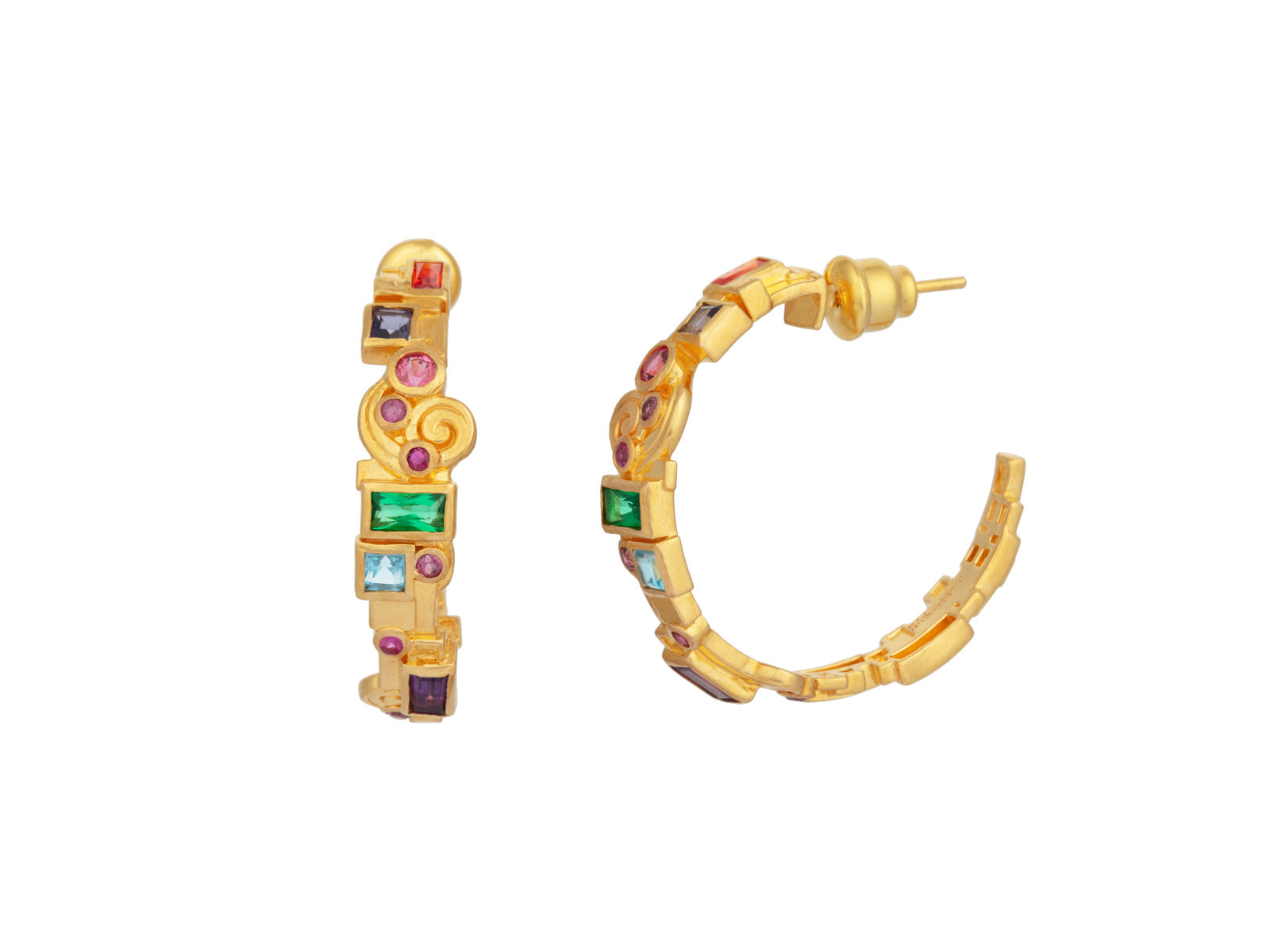 GURHAN Embrace Gold Mixed Stone Hoop Earrings, 1" Round
