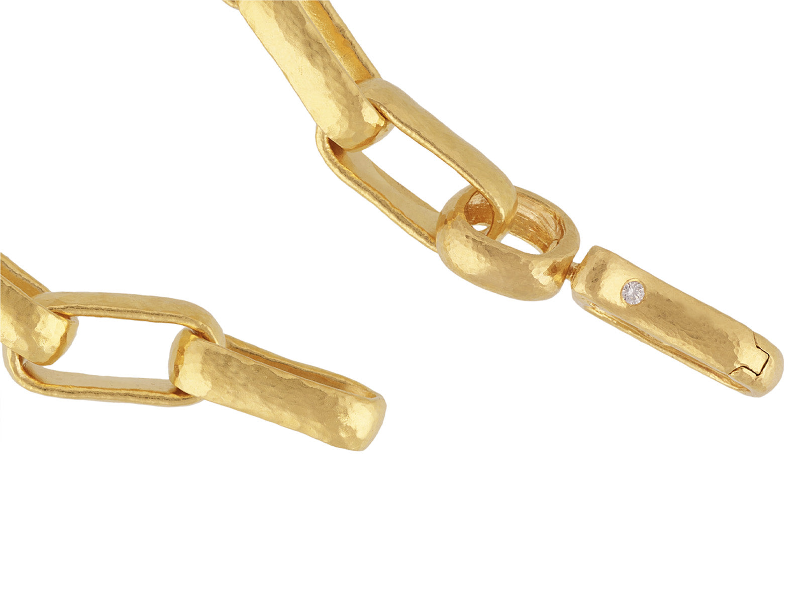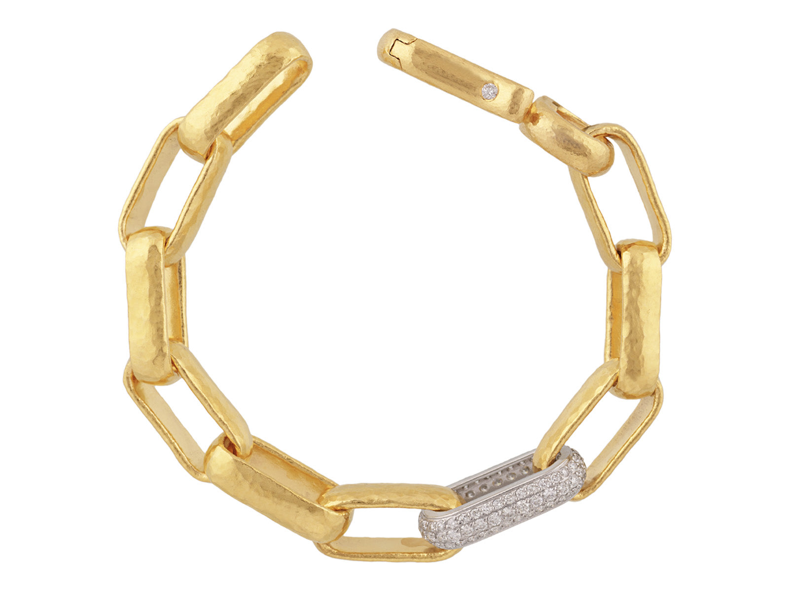 GURHAN Hoopla 24K Gold Diamond Chain Link Bracelet, Large Chunky Oval, Single Pave Link