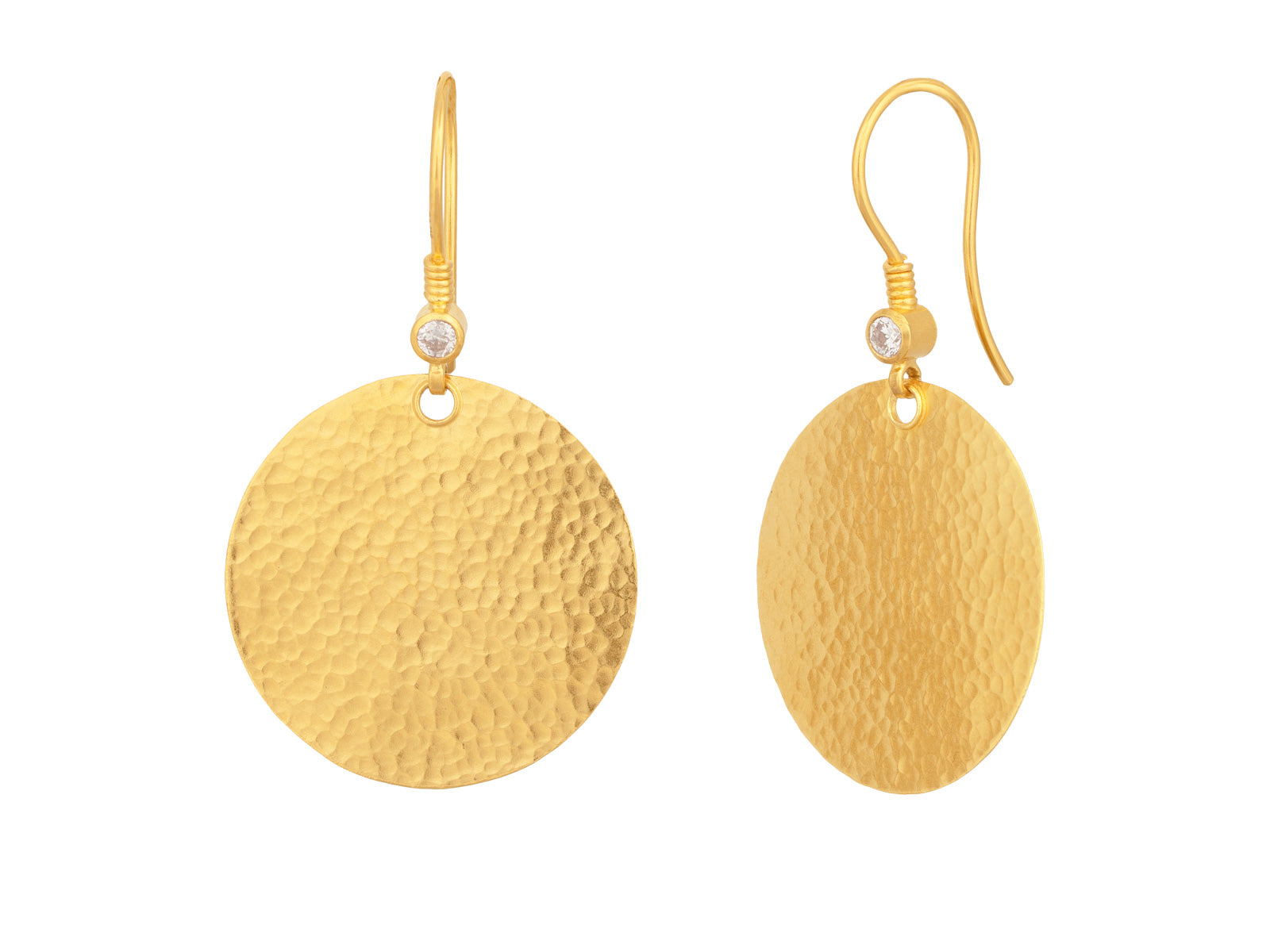 GURHAN Lush Gold Single Drop Earrings, 25mm Round Flake on Wire Hook