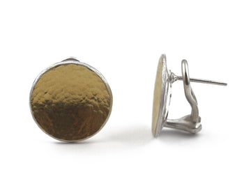 GURHAN Hourglass Sterling Silver Stud Earrings, 16mm Round on Clip Post, Gold Accents