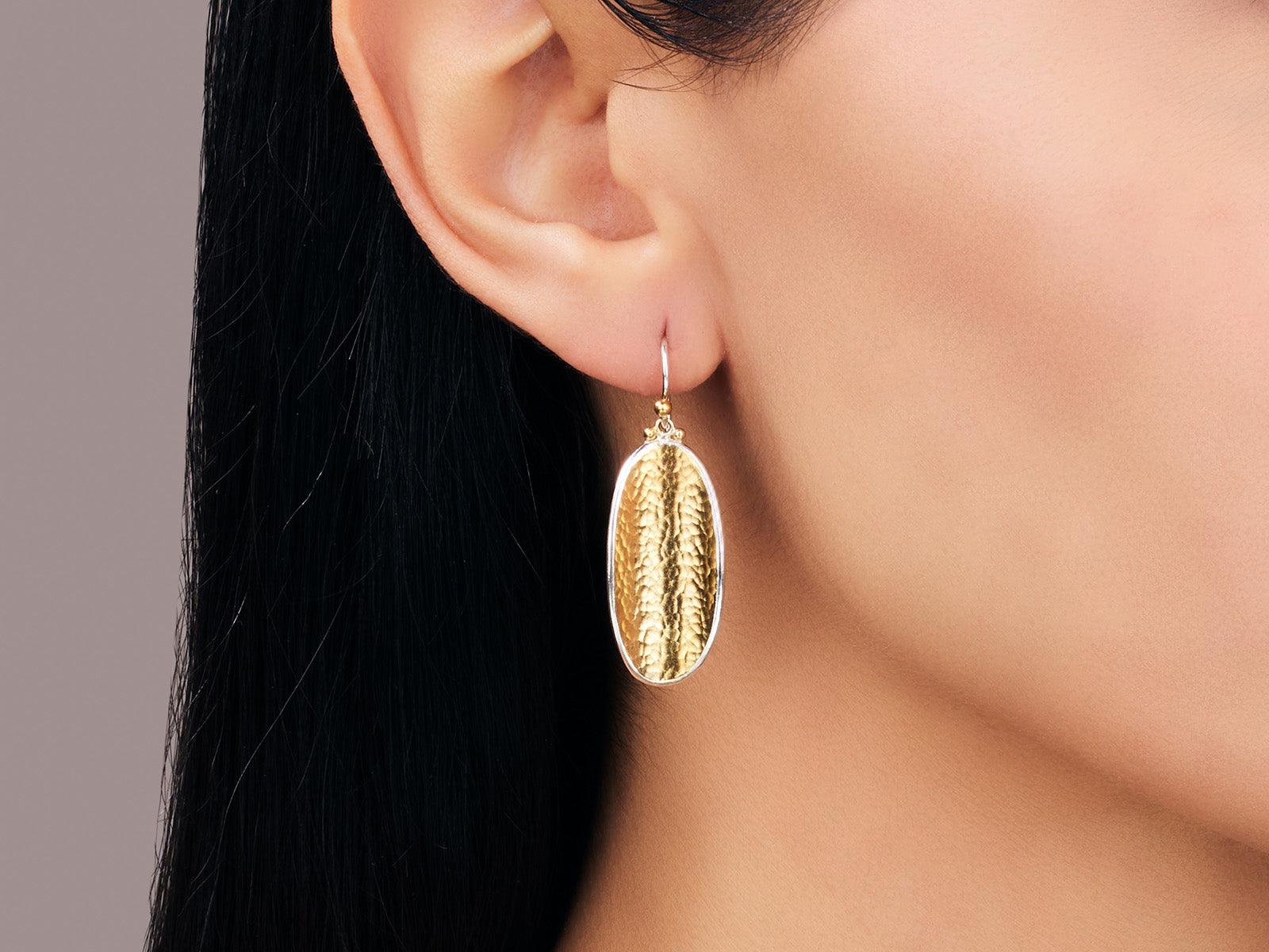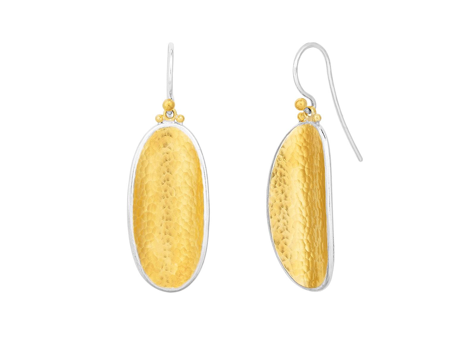 GURHAN Hourglass Sterling Silver Single Drop Earrings, Concave Oval on Wire Hook, Gold Accents