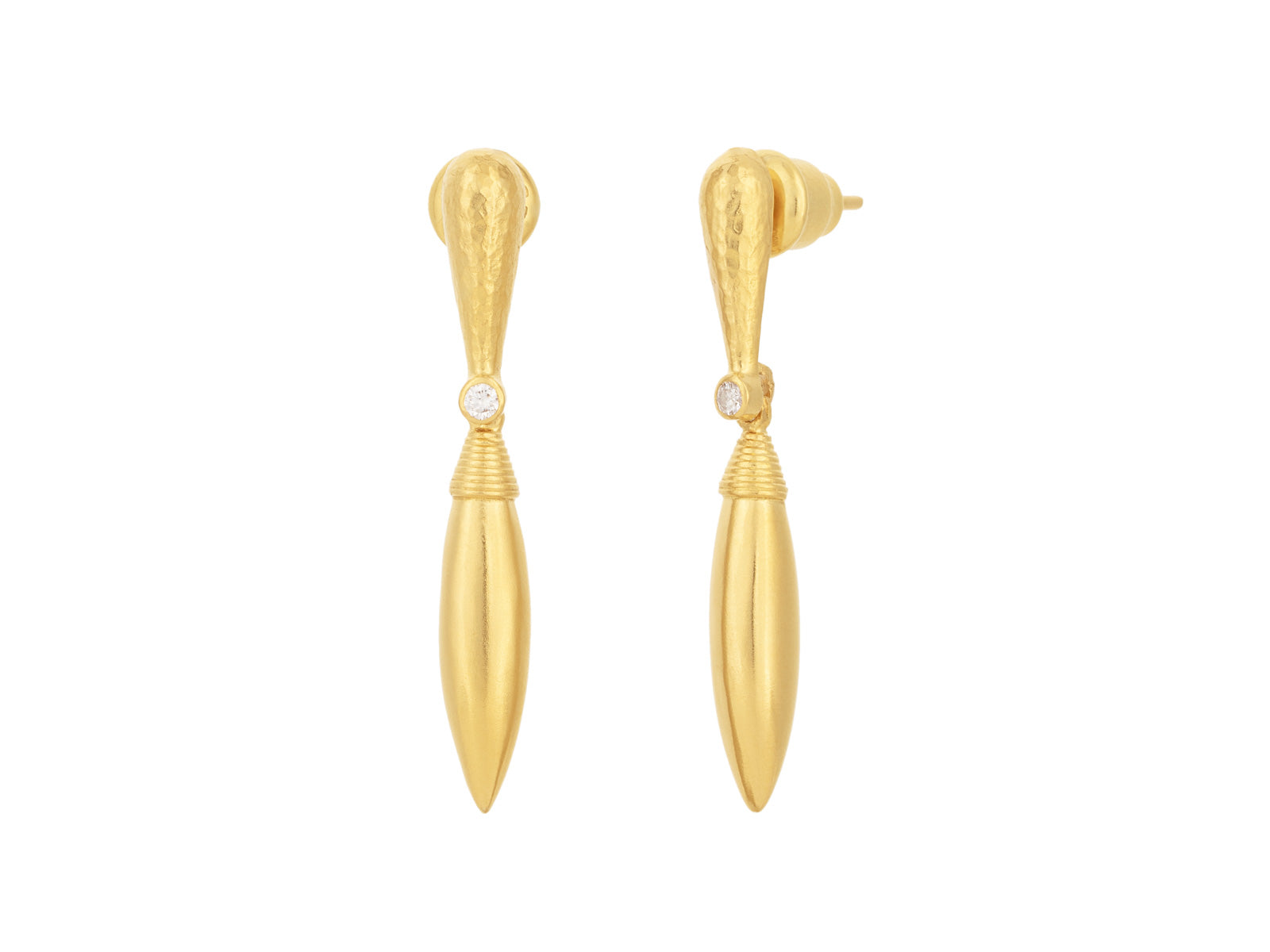 GURHAN Wheat Gold Diamond Single Drop Earrings, 24K Gold Coiled Cap