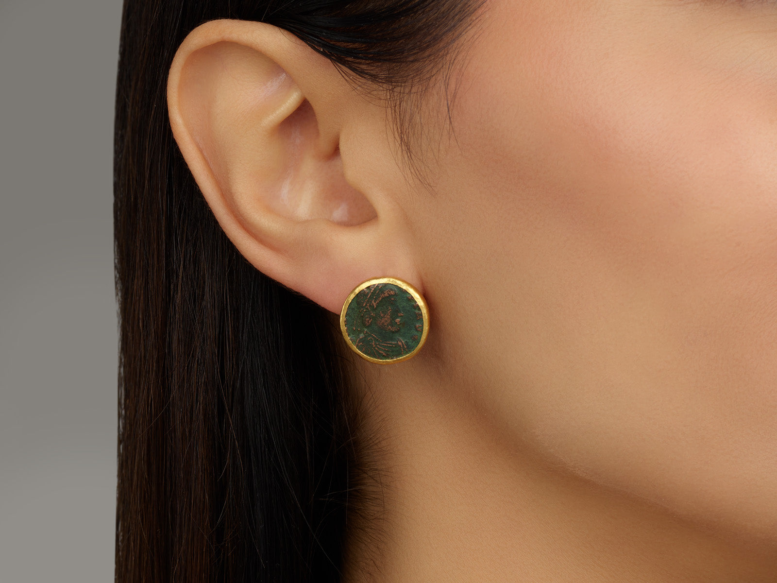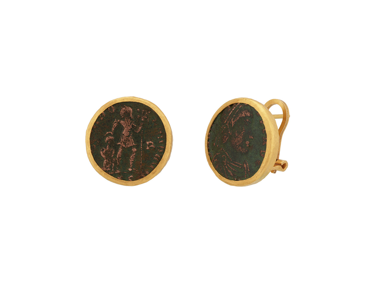 GURHAN Antiquities Gold Coin Clip Post Stud Earrings, 16mm Round Roman Imperial Coins
