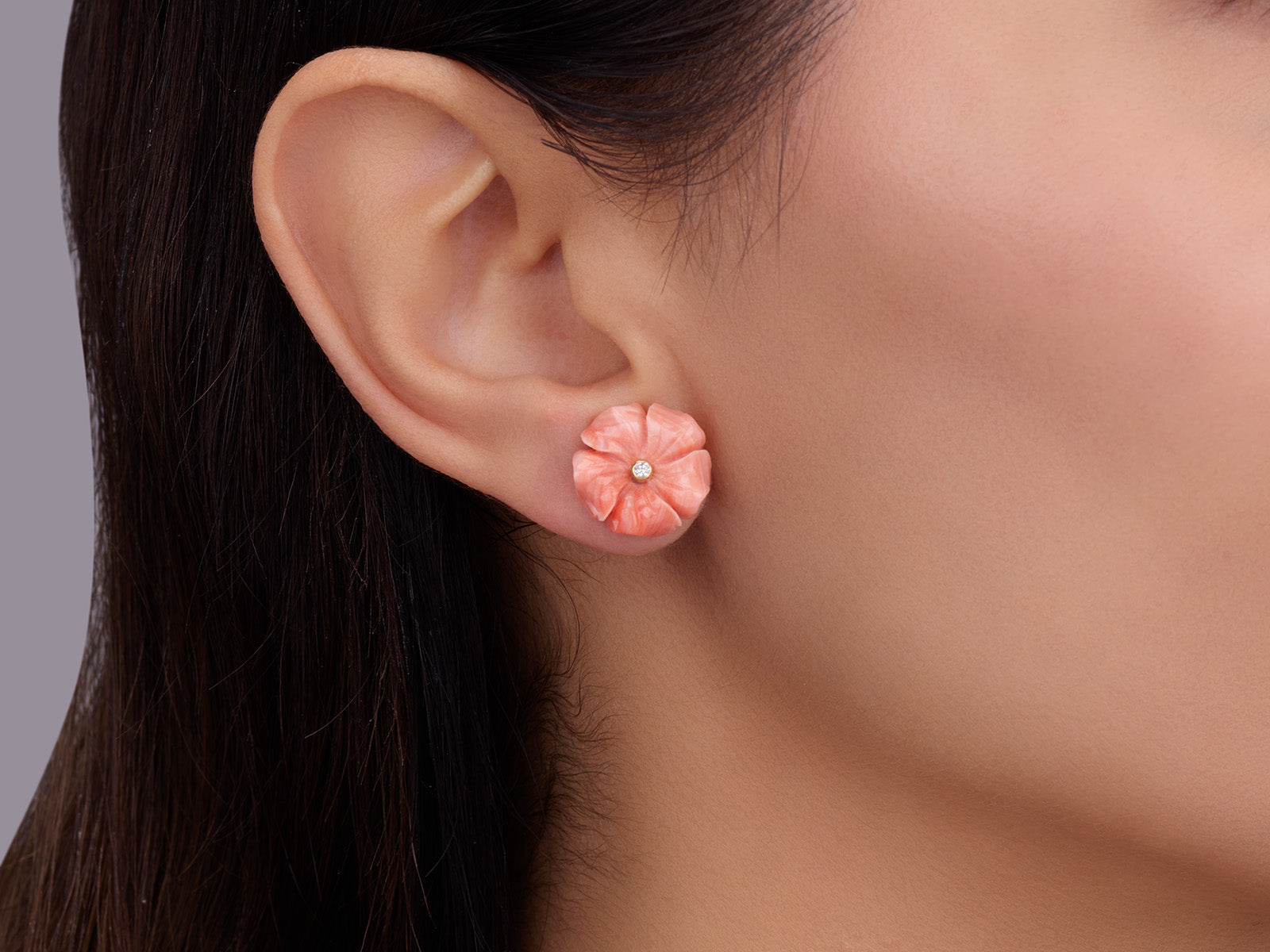GURHAN Rune Gold Coral Post Stud Earrings, 16mm Carved Flower Coral