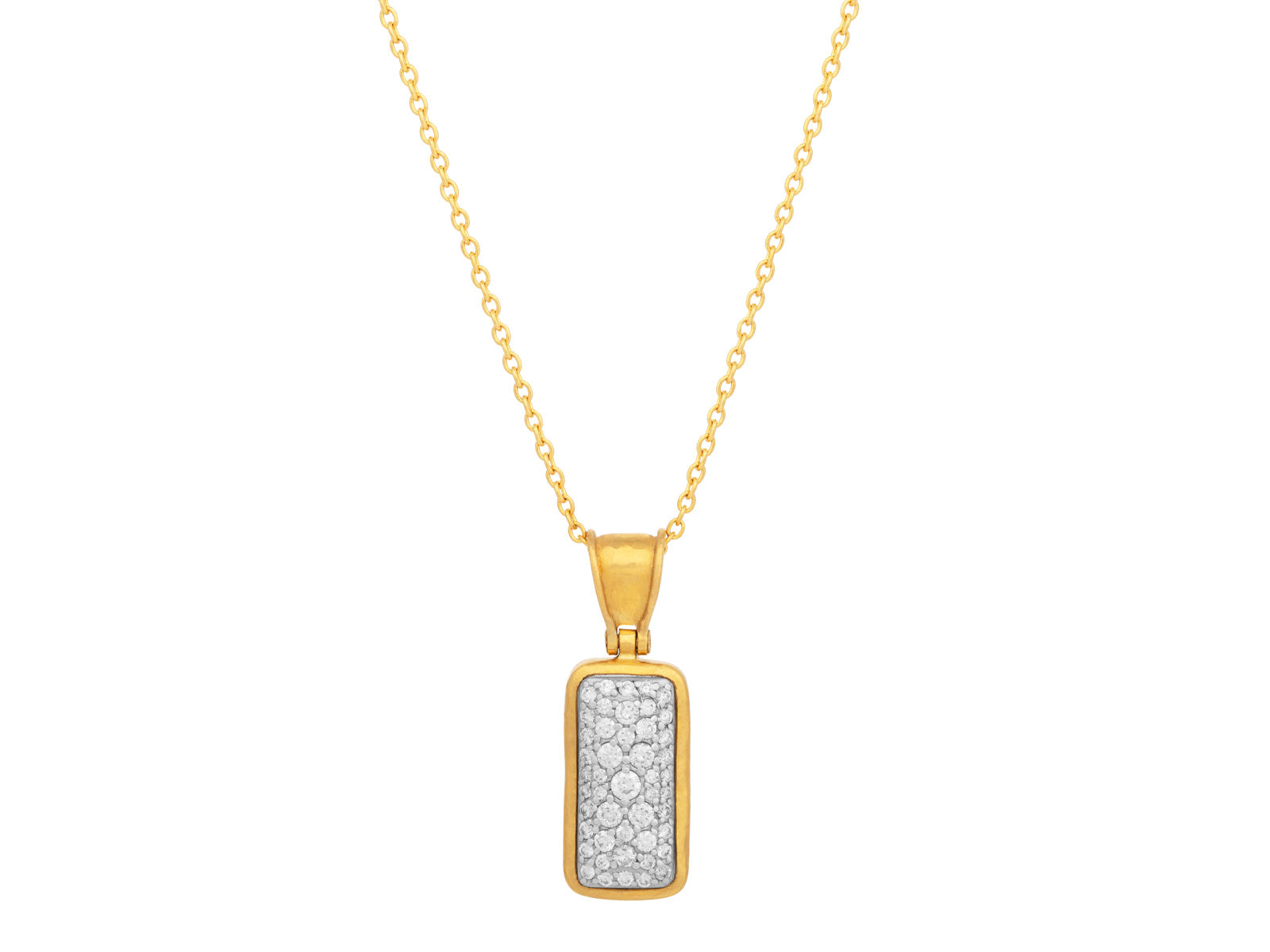 GURHAN Pointelle Gold Diamond Pave Pendant Necklace, 32x11mm Rectangle Stone Cluster