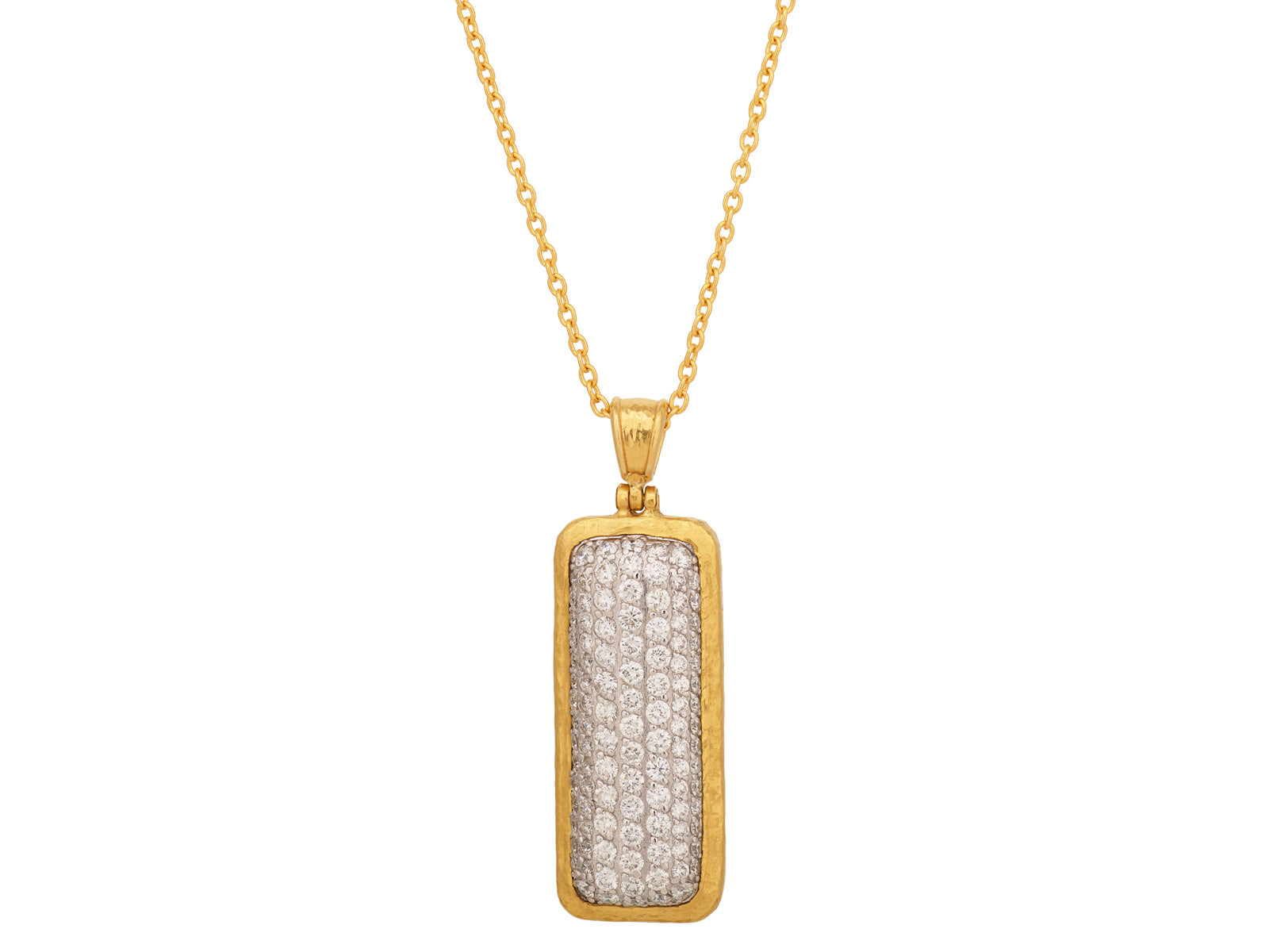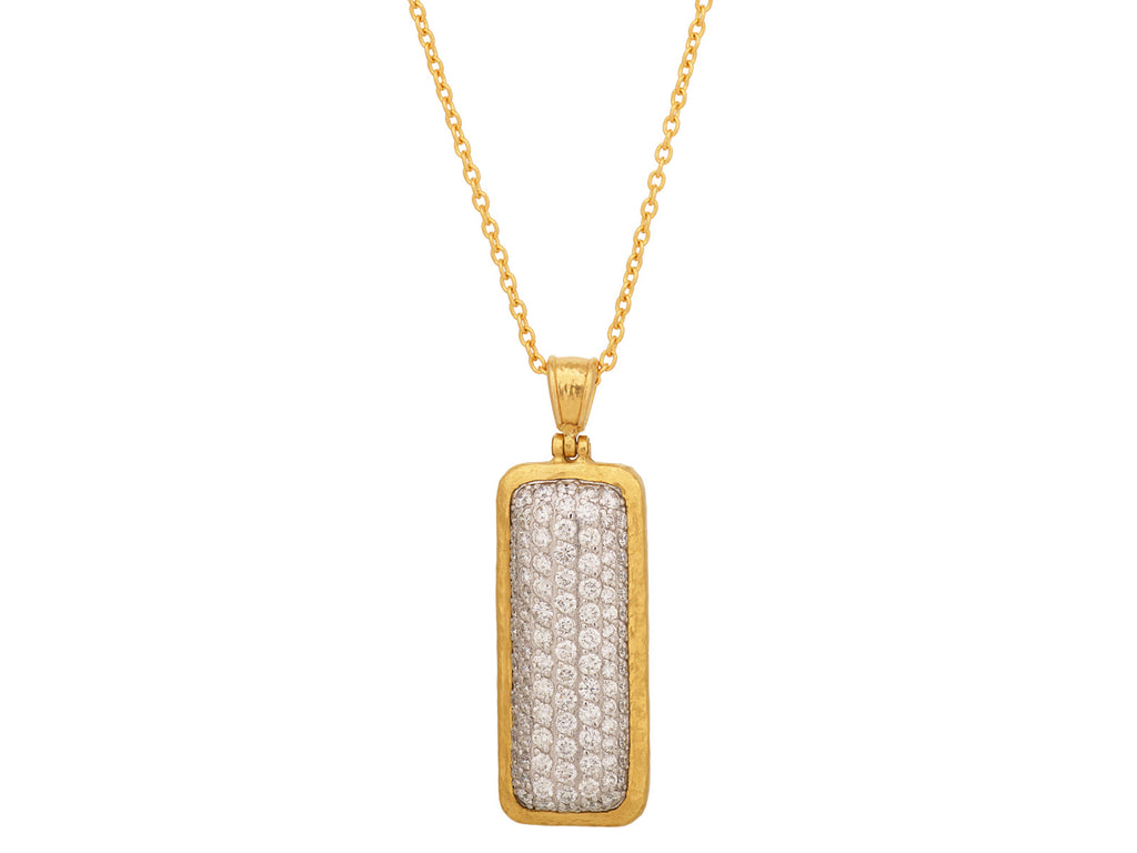 GURHAN Pointelle Gold Diamond Pave Pendant Necklace, 41x13mm Rectangle
