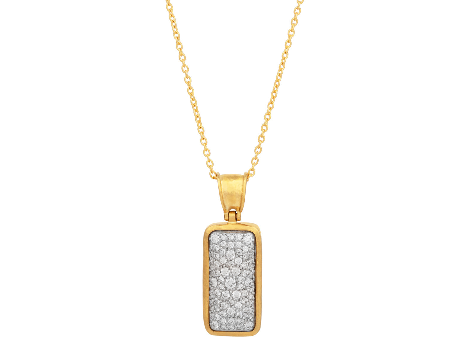 GURHAN Pointelle Gold Diamond Pendant Necklace, 36x12mm Rectangle Stone Cluster