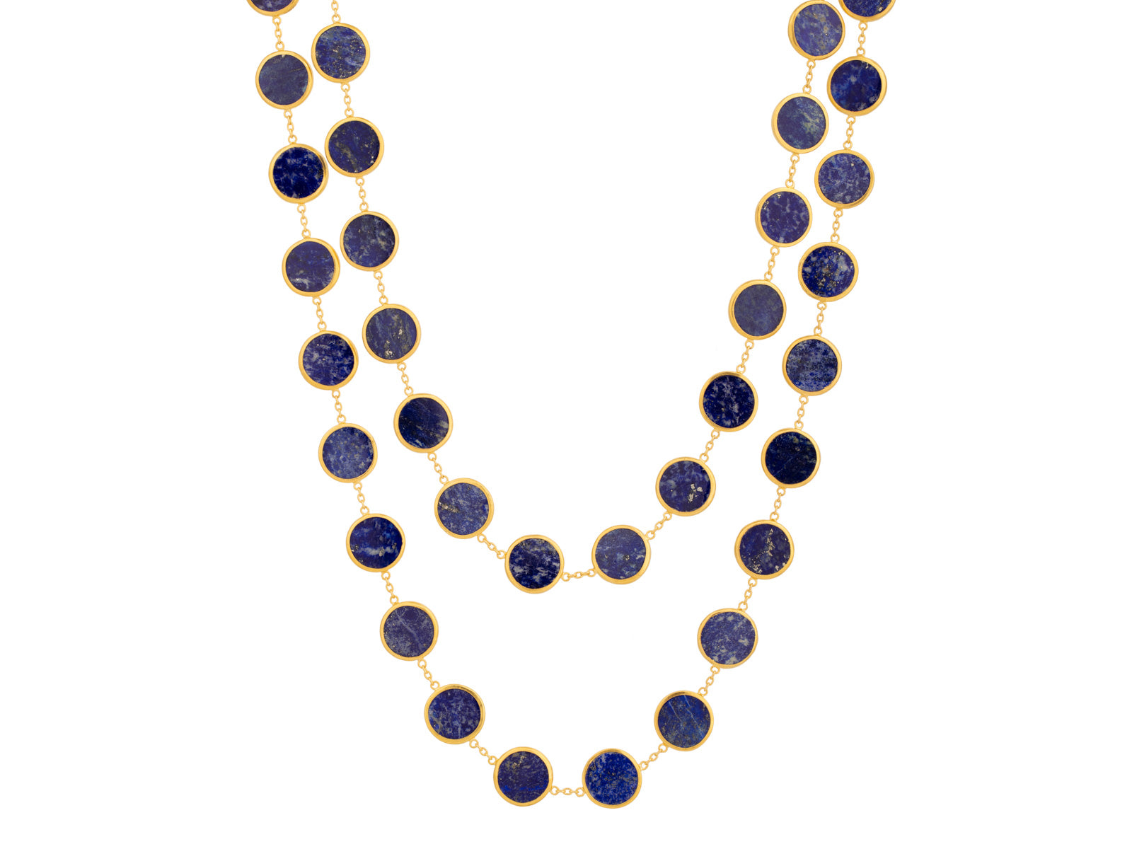 GURHAN Rune Gold Lapis Station Long Necklace, 14mm Round Stones with Thin Delicate Chain