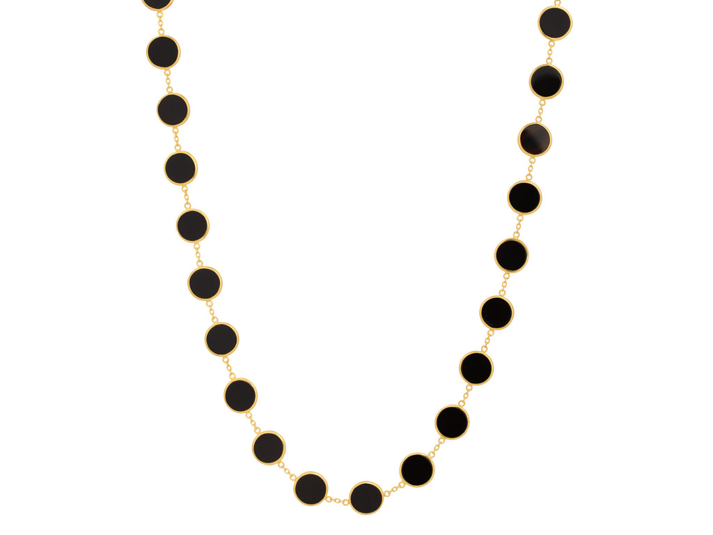 GURHAN Rune Gold Onyx Single-Strand Short Necklace, 12mm Round Links