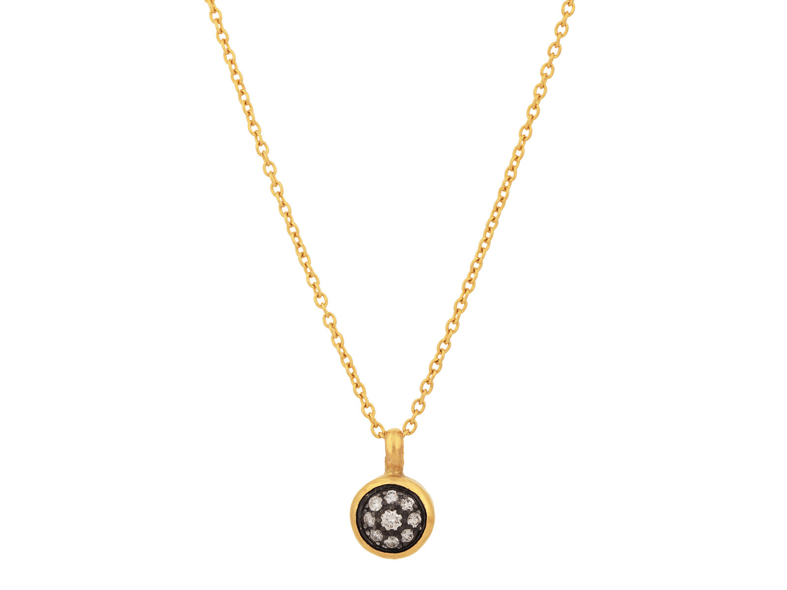 GURHAN Celestial Gold Diamond Pendant Necklace, Round Stone Cluster set in Blackened 18K White Gold