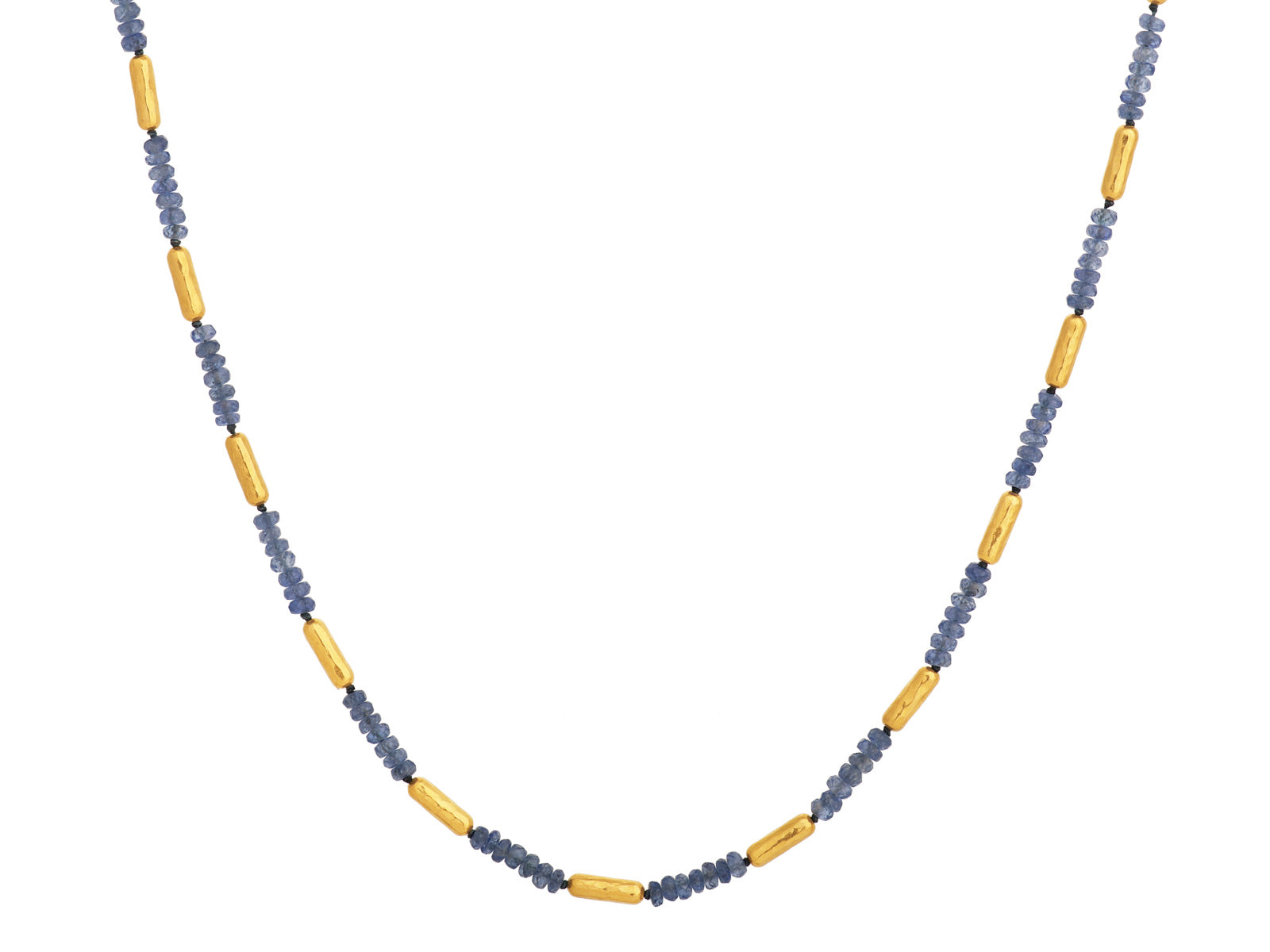 GURHAN Vertigo Gold Sapphire Single-Strand Beaded Short Necklace, Thin Gold Tubes