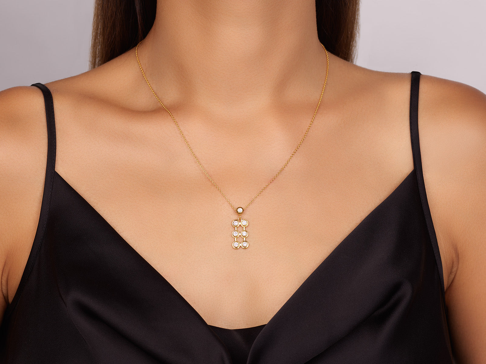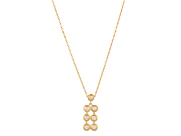 An elegant expression of modern artistry, this 22K gold Pointelle necklace features a rectangular pendant accented with brilliant-cut white diamonds totaling 0.66ct, enhanced by a single diamond on the bale. Suspended from a 16–18" solid gold chain with an 18K clasp, it reflects refined craftsmanship and timeless sophistication.