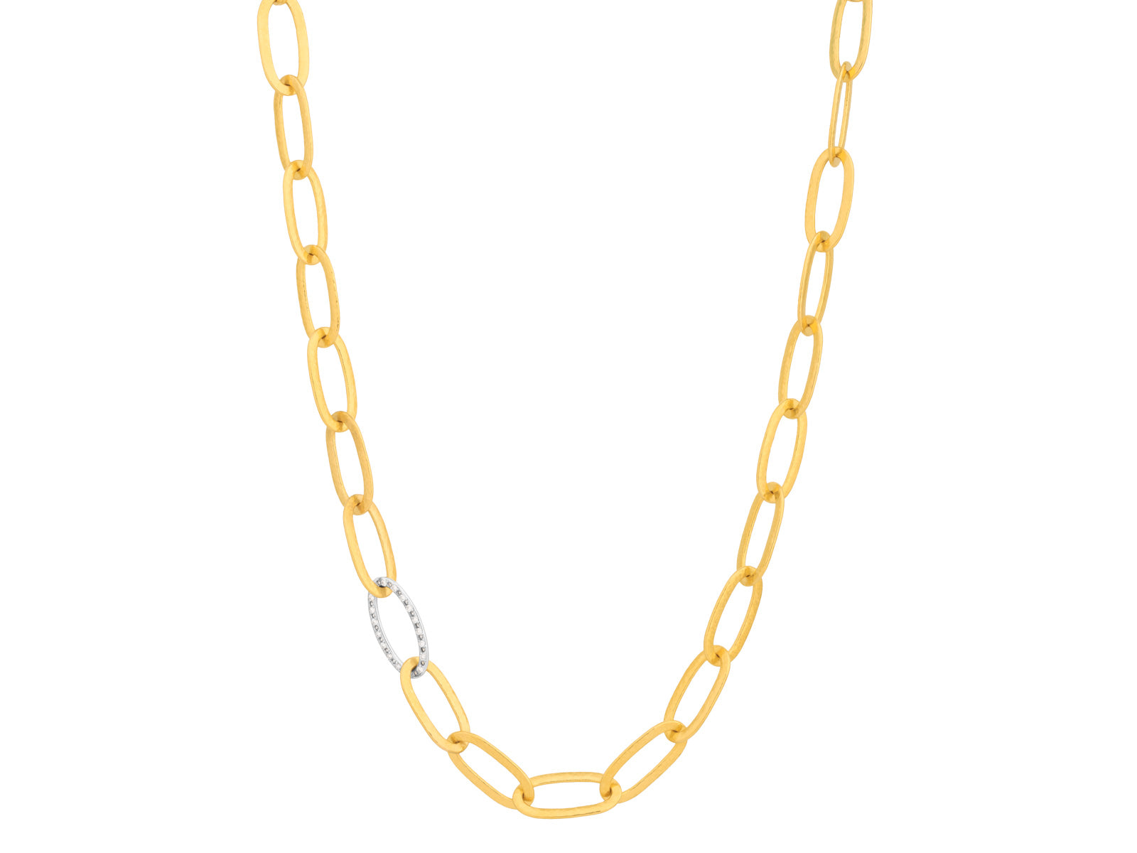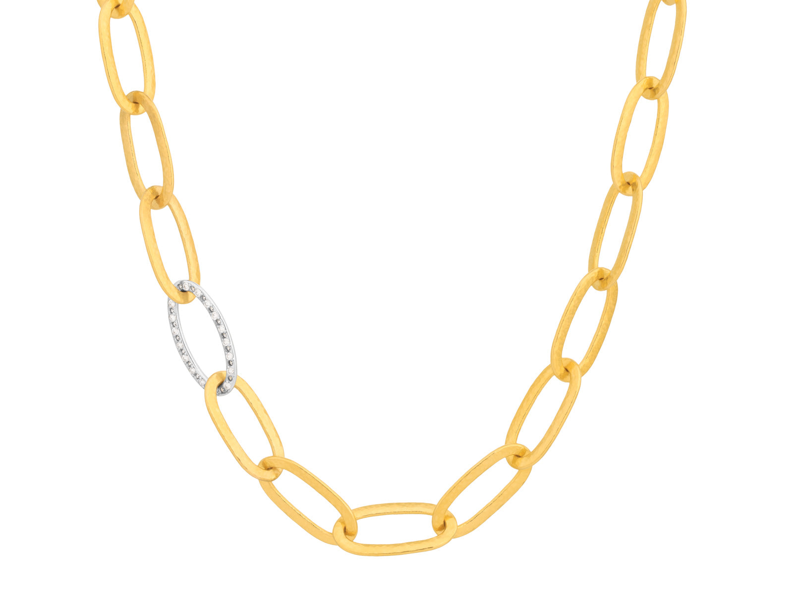 GURHAN Hoopla Gold Diamond Chain Link Necklace, 20x7mm Flat Oval with Single Pave Link