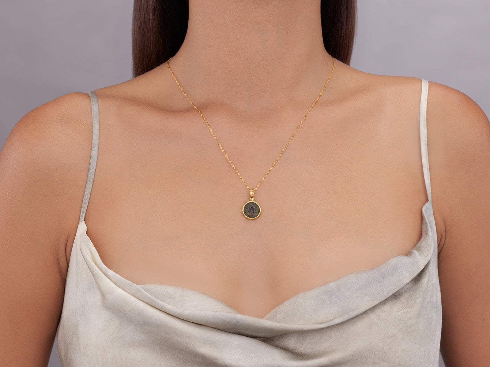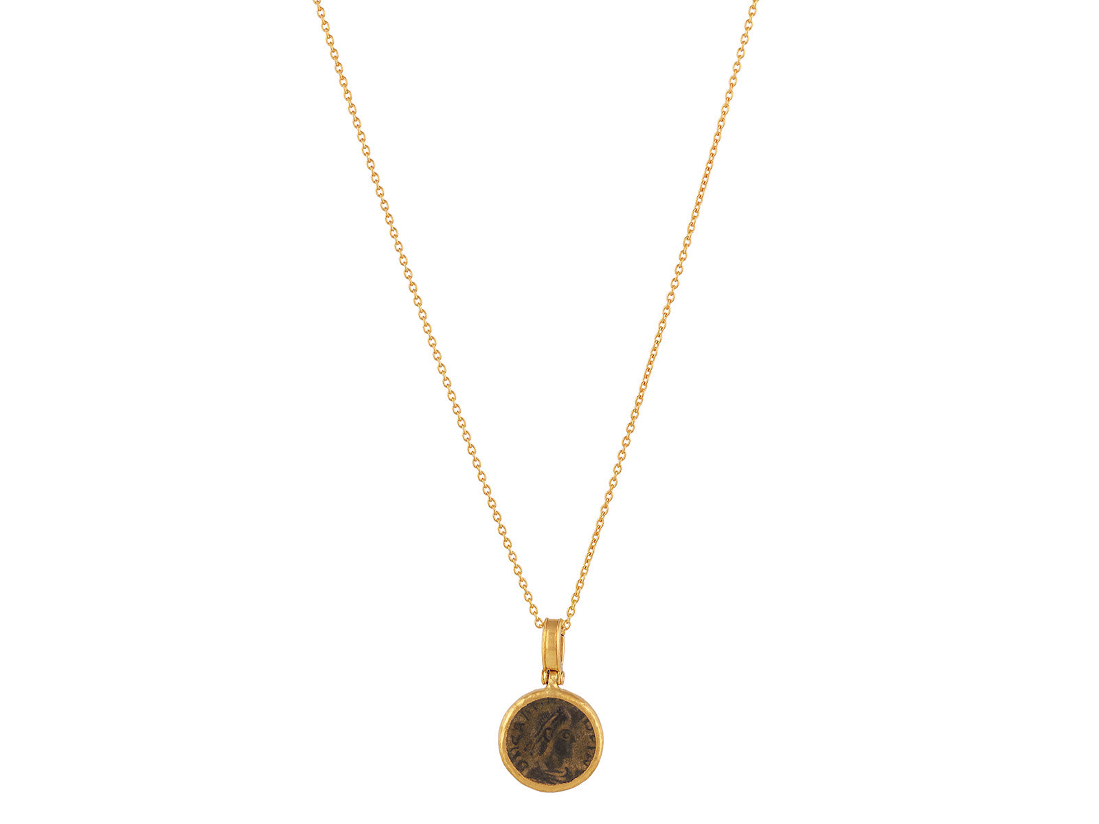 GURHAN Antiquities Gold Coin Pendant Short Necklace, 12mm round Roman Imperial Coin