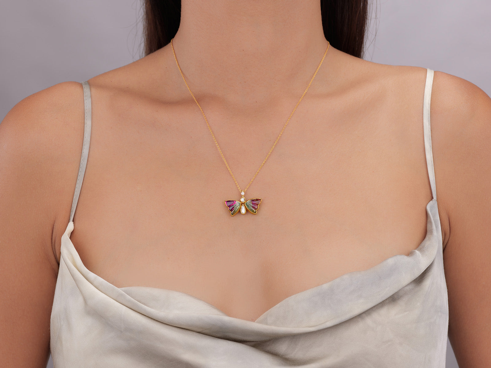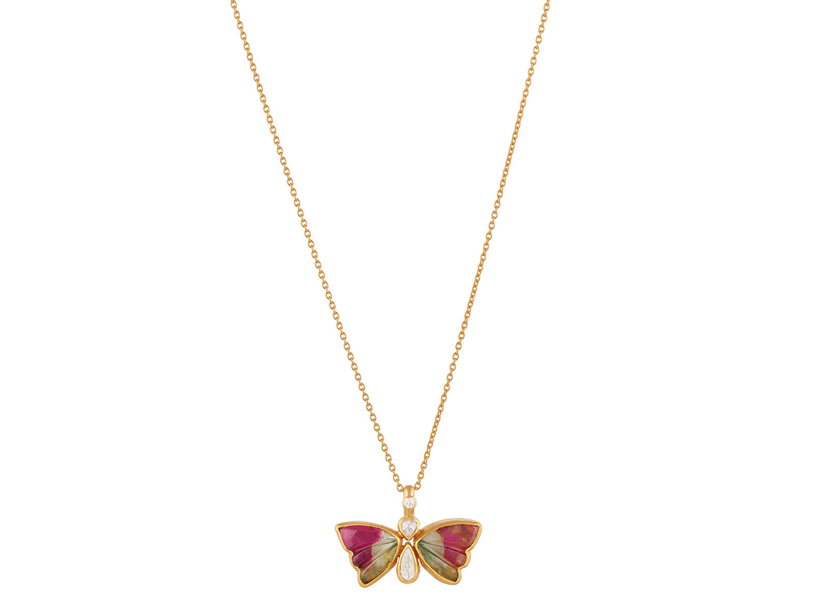 GURHAN Butterfly Gold Tourmaline Pendant Short Necklace