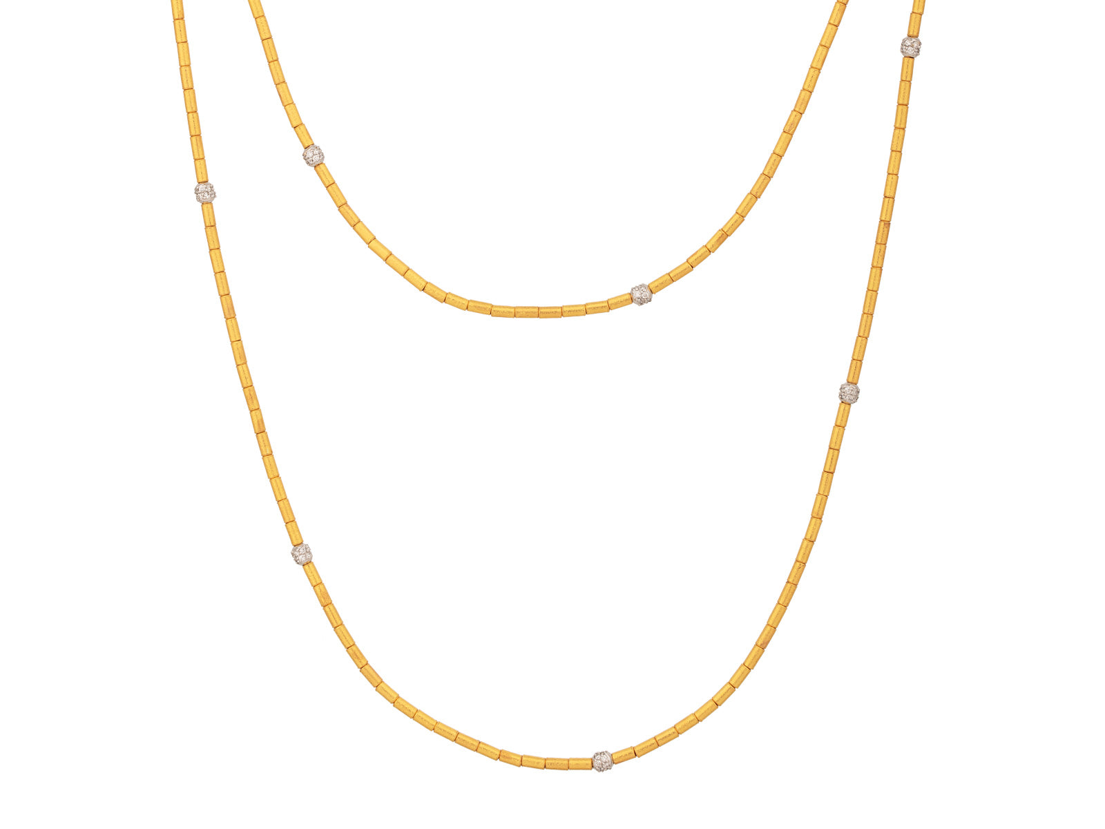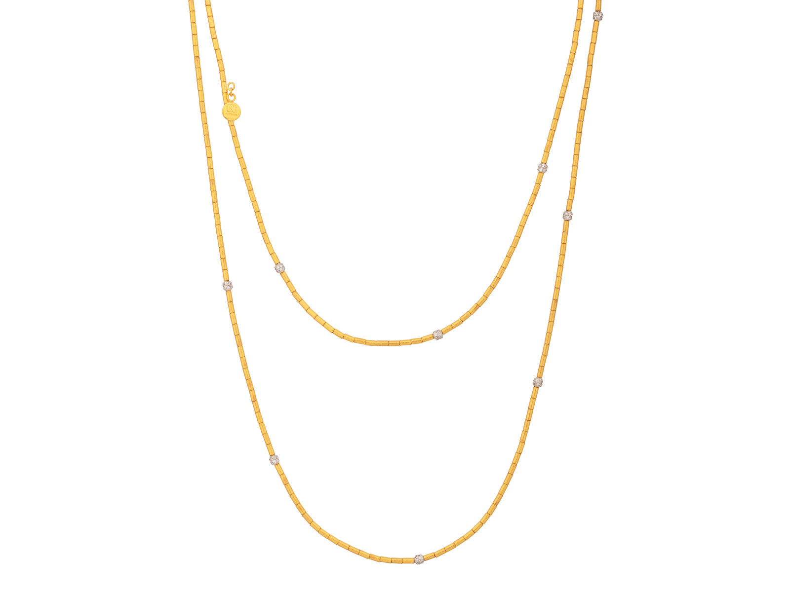 GURHAN Vertigo Gold Diamond Single-Strand Long Necklace, Thin Gold Tubes with 10 White Gold Pave Stations