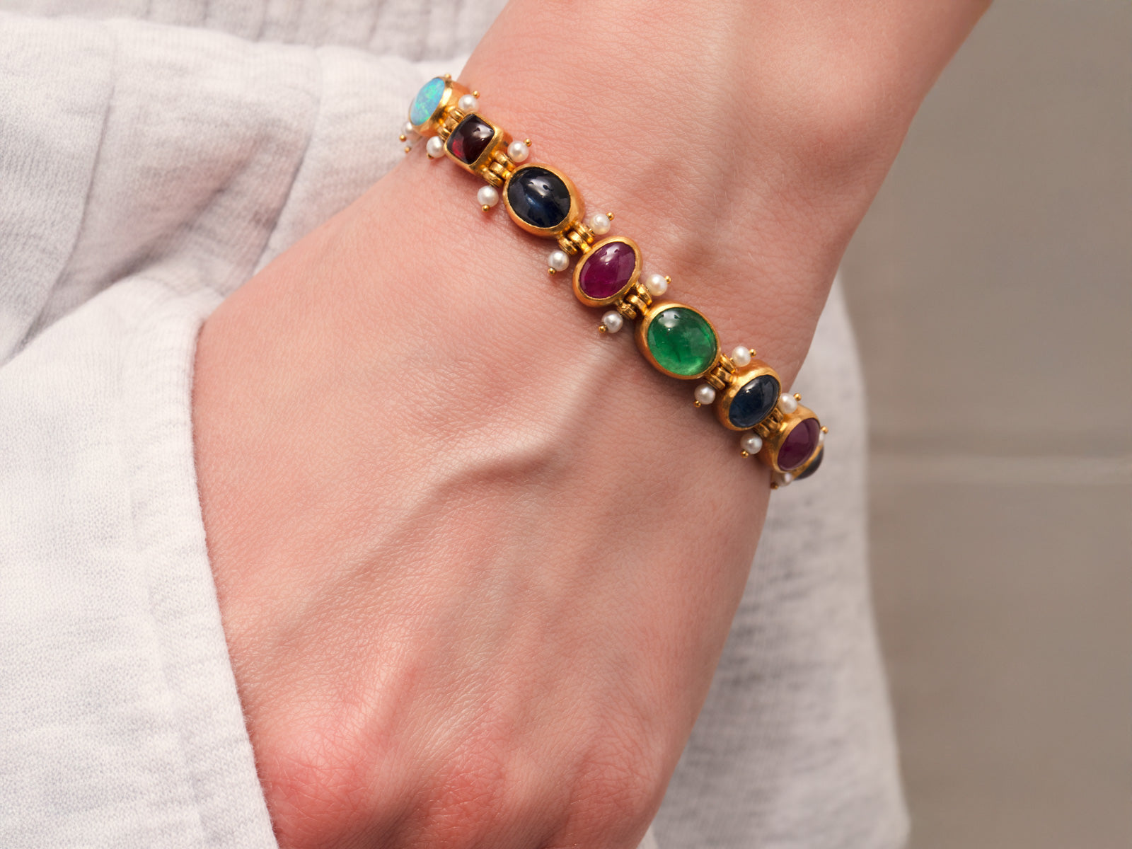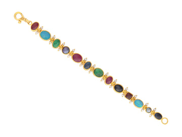 GURHAN Rune Gold Mixed Stone All Around Single-Strand Bracelet, Mixed Shapes, Pearl Accented Hinges