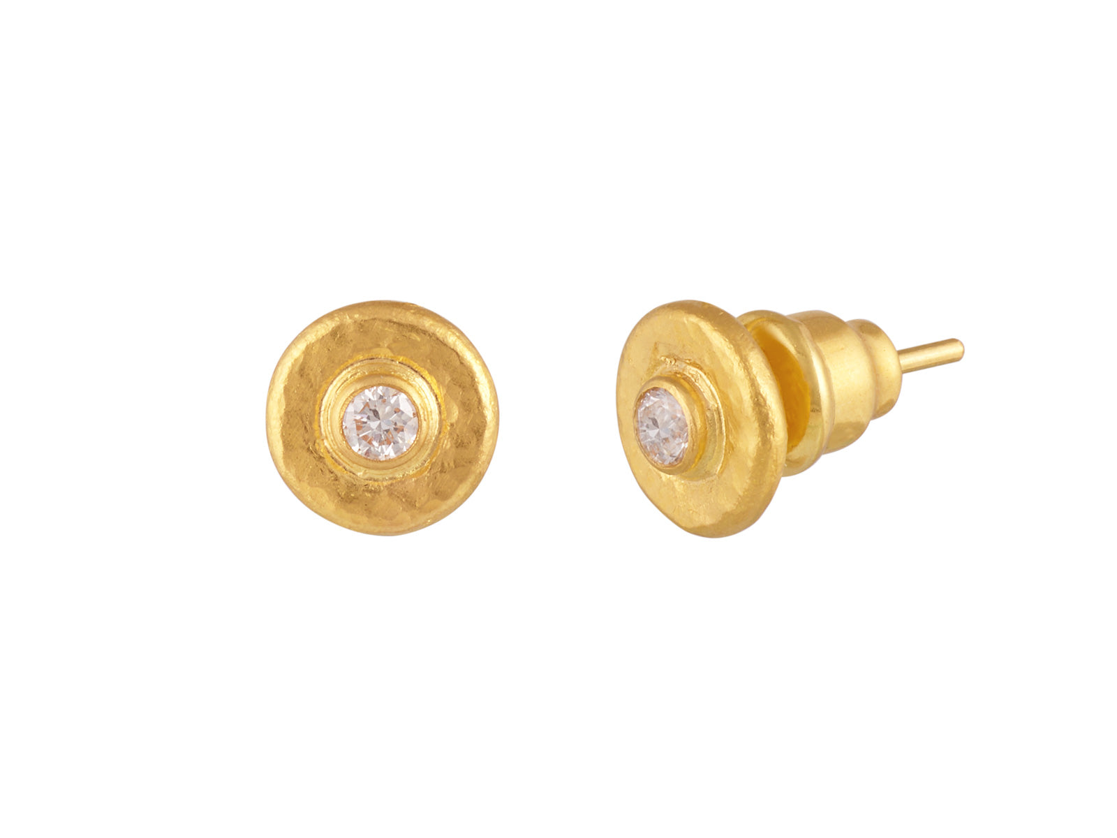 GURHAN Droplet Gold Diamond Stud Earrings, 8mm Wide on Post