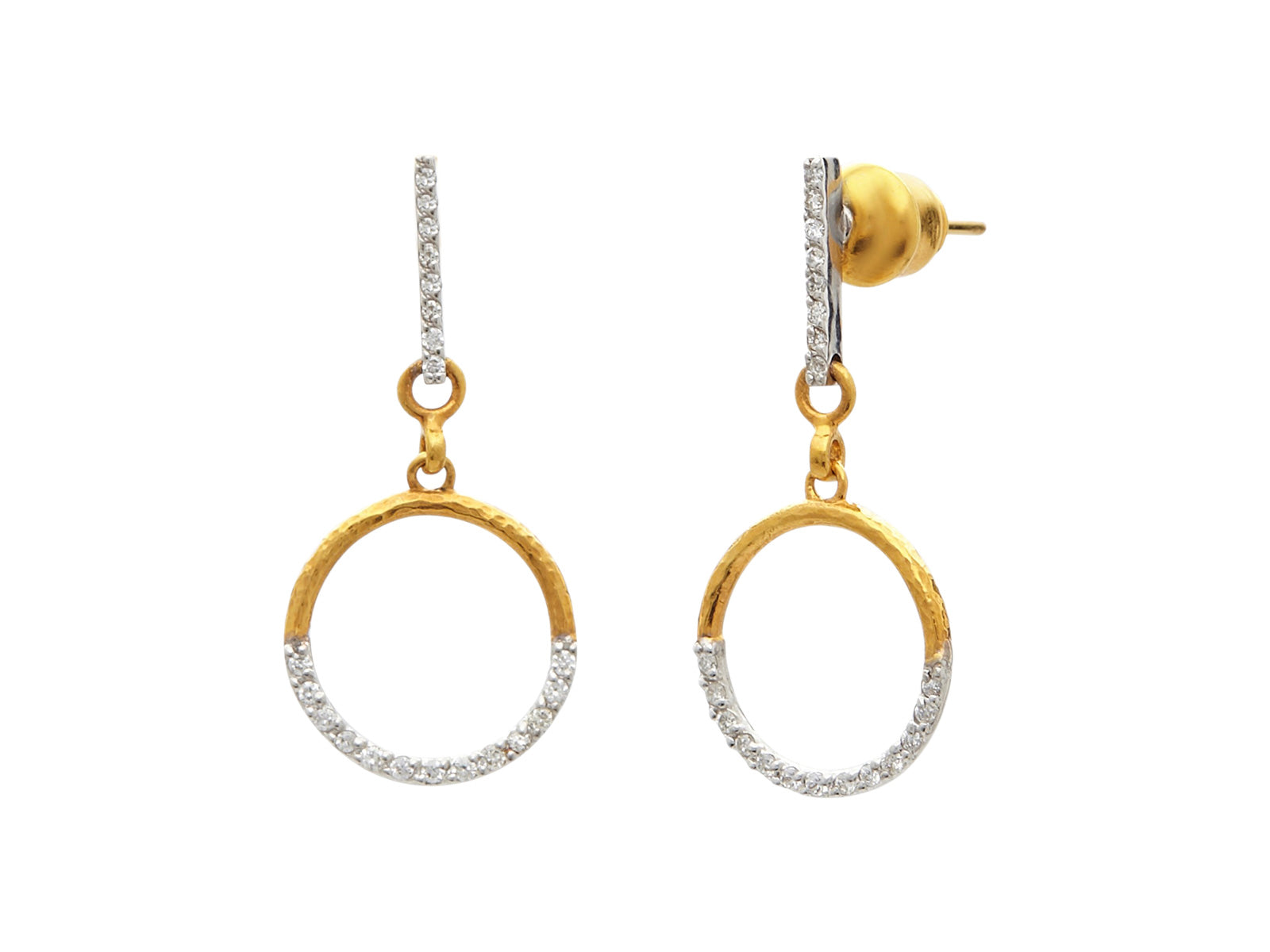 GURHAN Geo Gold Diamond Single Drop Earrings, Small Half Pave Round Link on Post Top