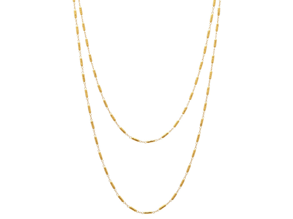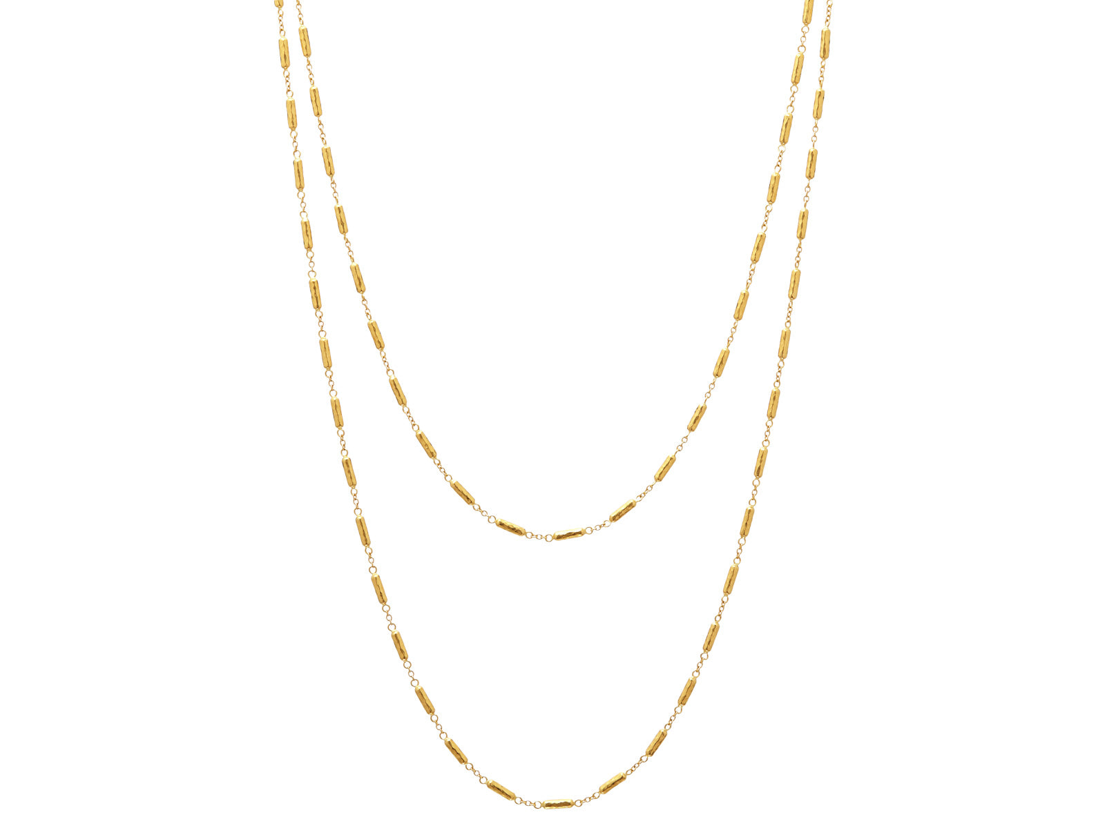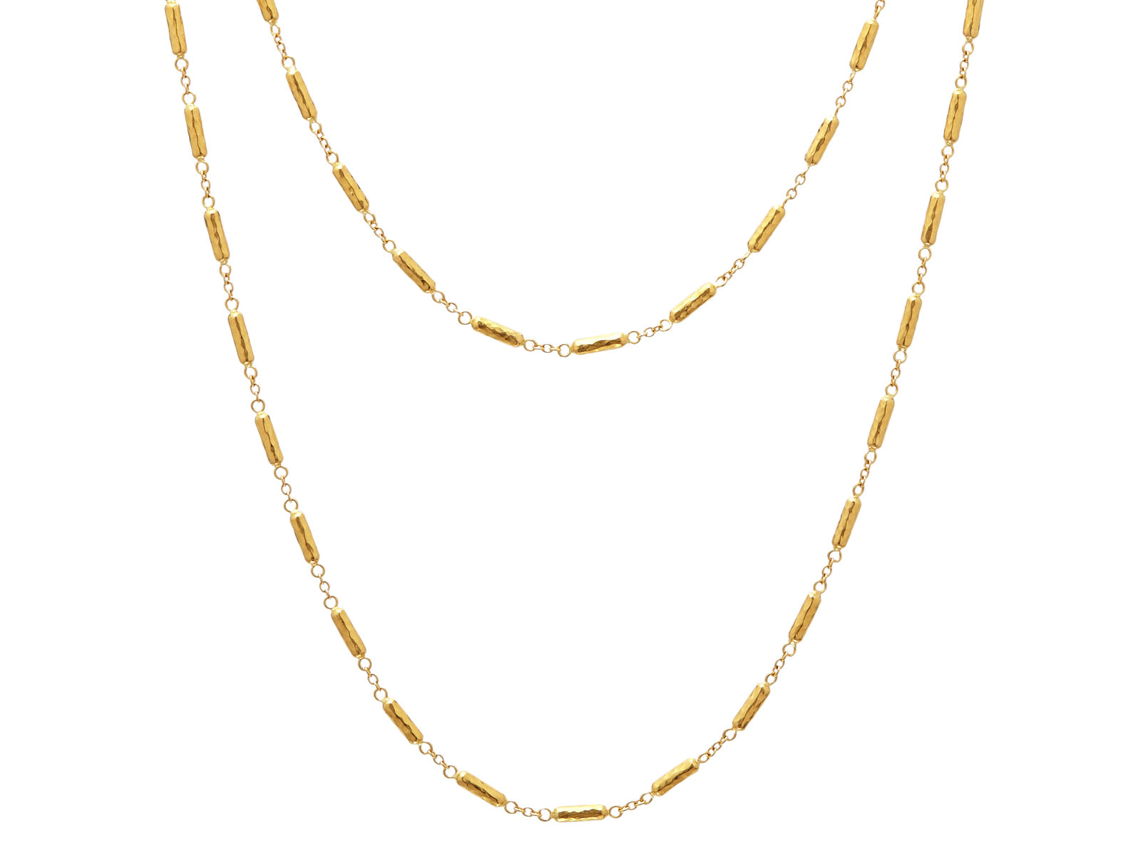 GURHAN Vertigo Gold Link Long Necklace, Thin Hammered Beads on Delicate Chain