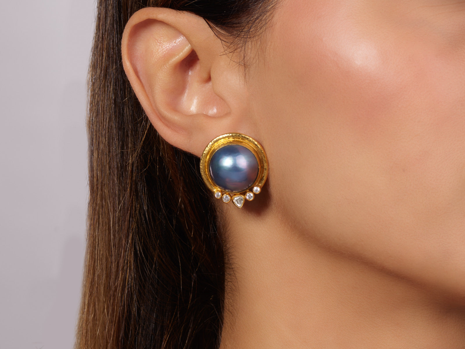GURHAN Oyster Gold Pearl Clip Post Stud Earrings