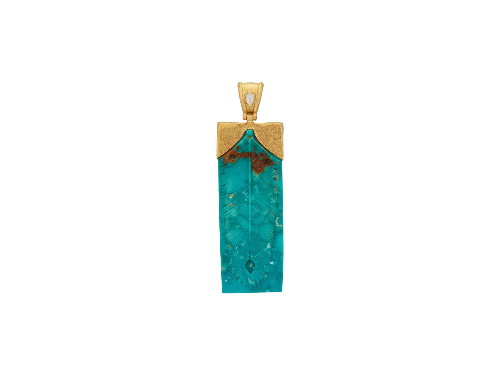 GURHAN Crown Gold Turquoise Pendant, 51x19mm Carved Feather Depiction
