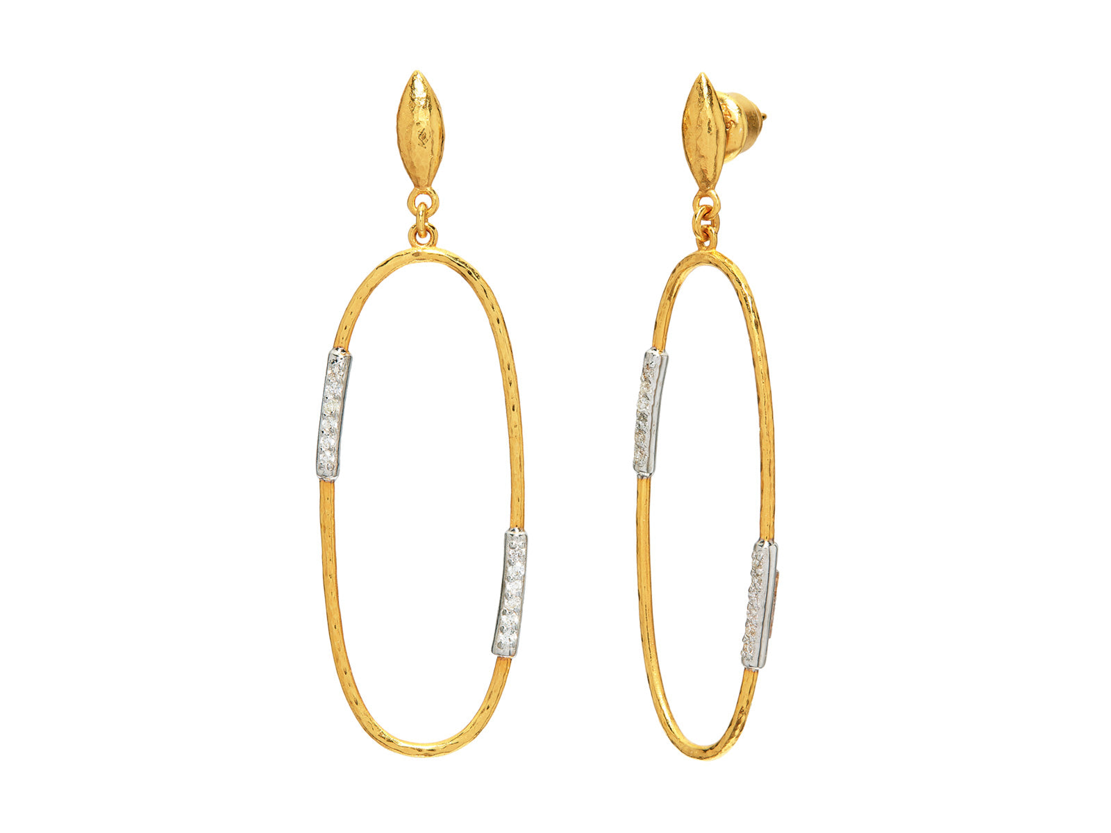 GURHAN Geo Gold Diamond Single Drop Earrings, Large Oval with Pave Stations