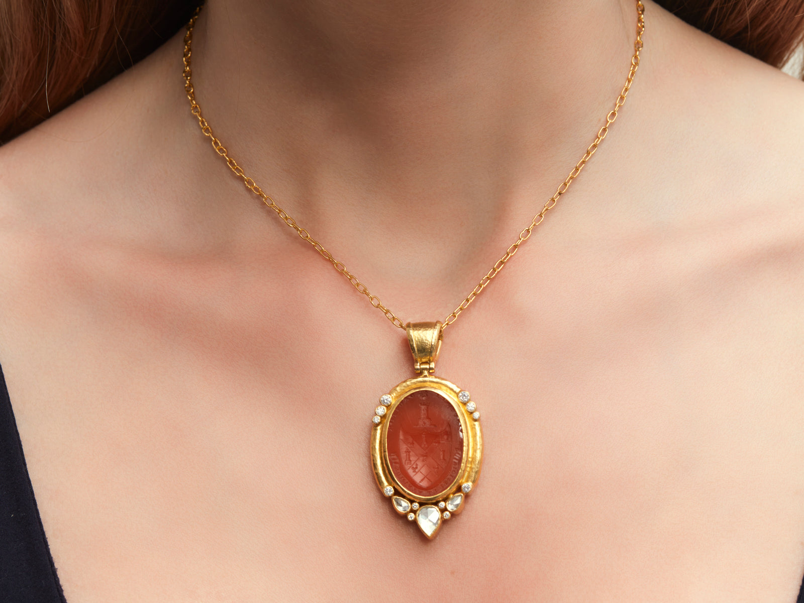 GURHAN Antiquities Gold Carnelian Intaglio Pendant Necklace, 29x21mm Oval set in Wide Frame