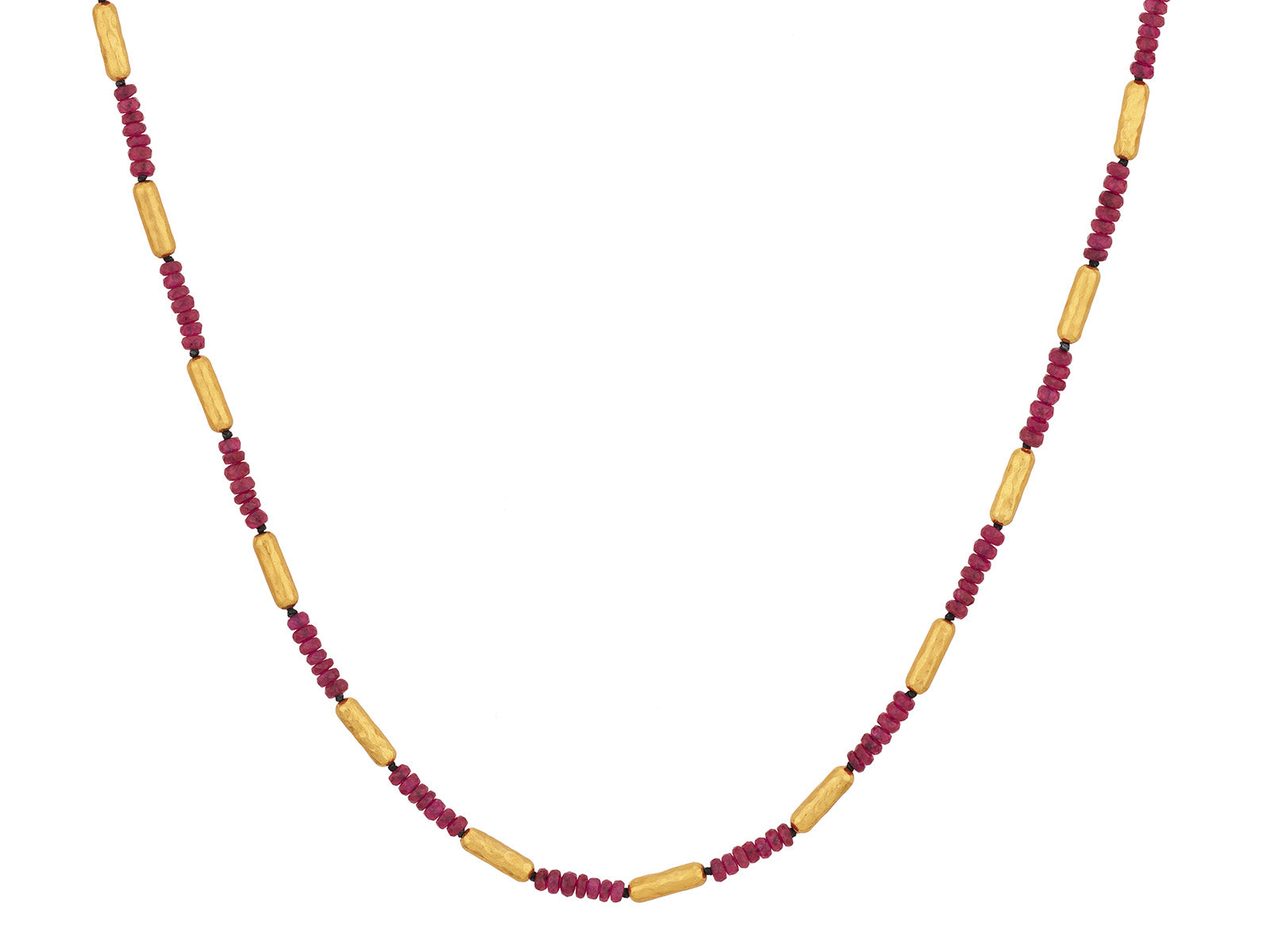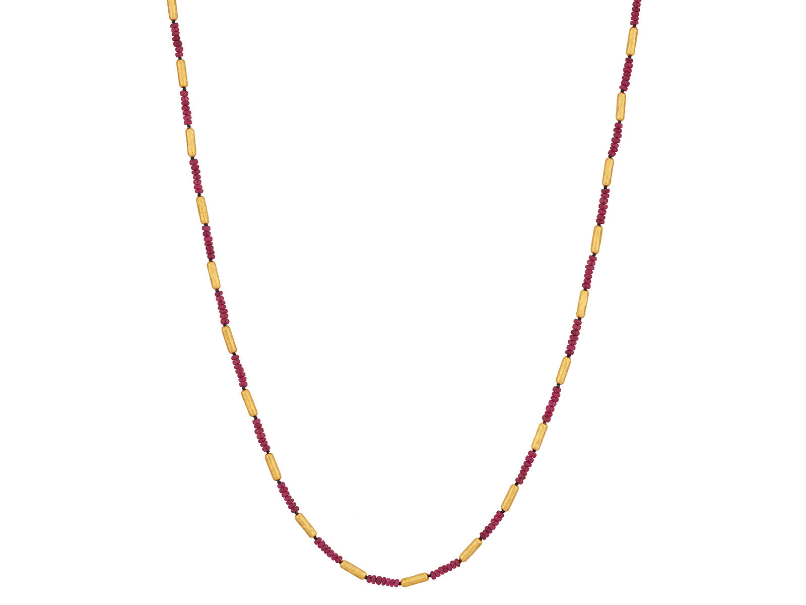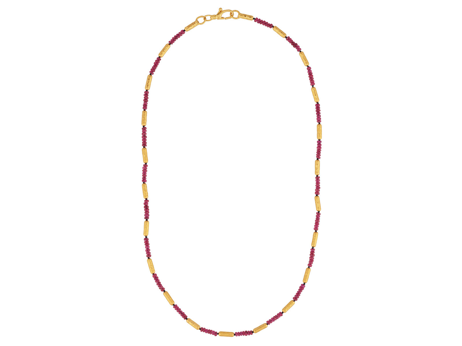 GURHAN Vertigo 24K Gold Ruby Beaded Necklace, Thin Gold Tubes