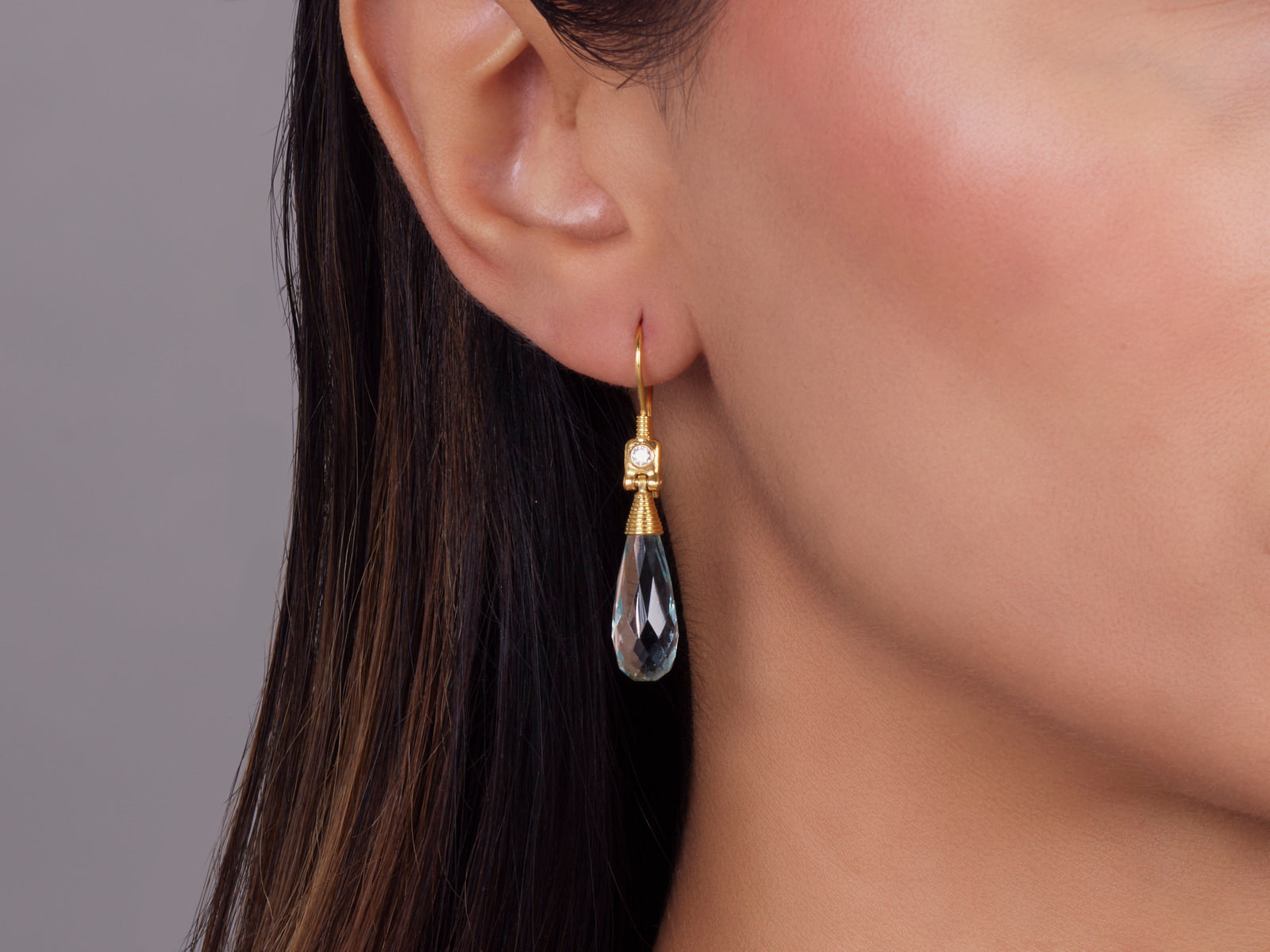 GURHAN Crown Gold Aquamarine Single Drop Earrings