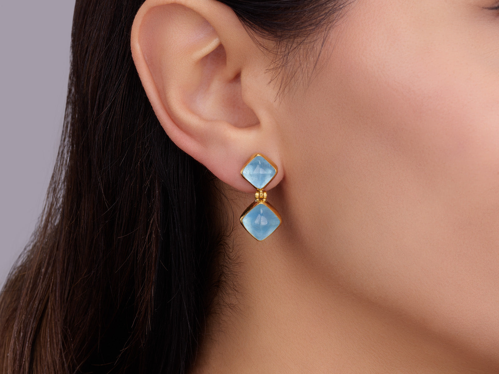 GURHAN Rune Gold Aquamarine Single Drop Earrings