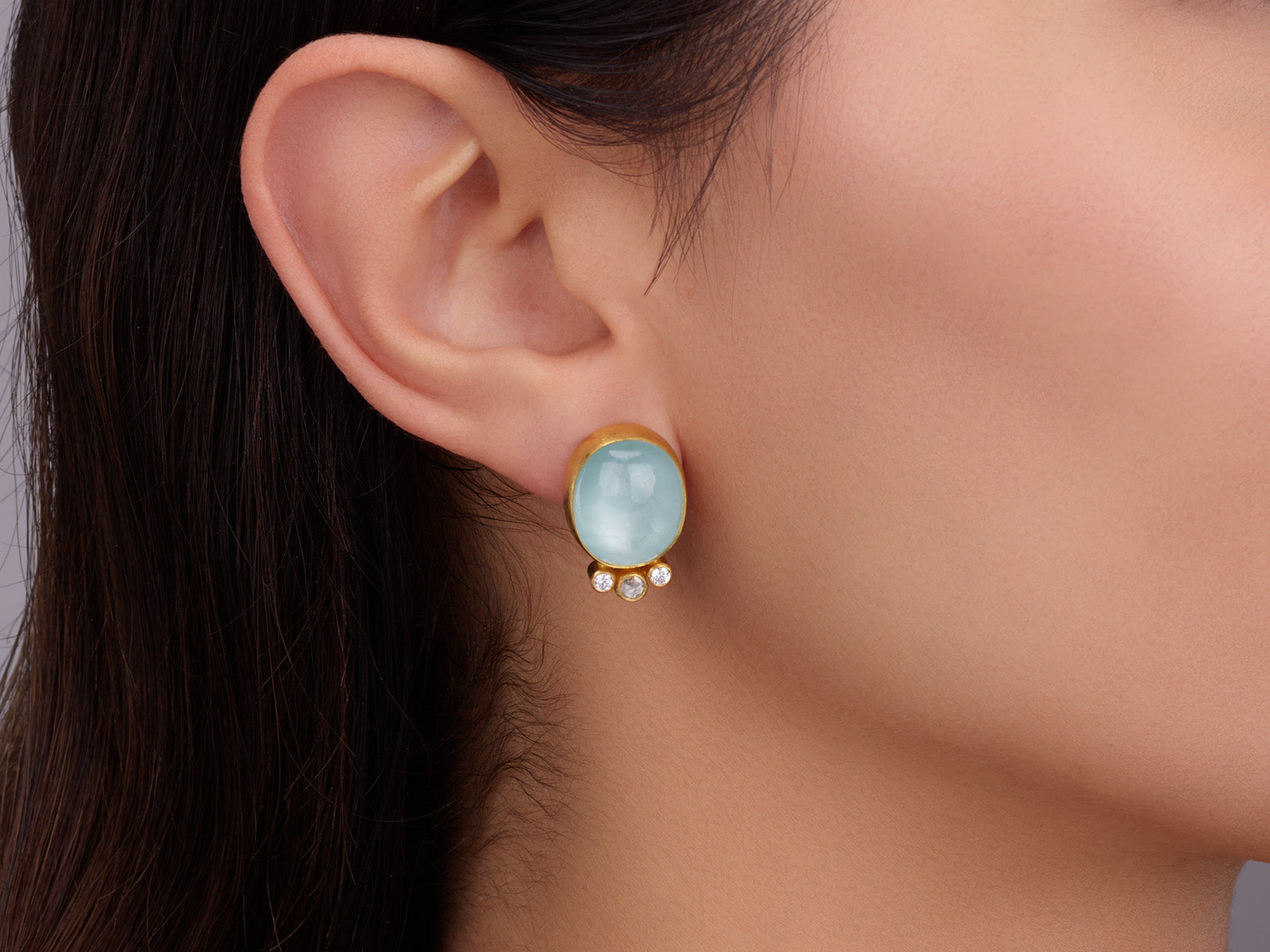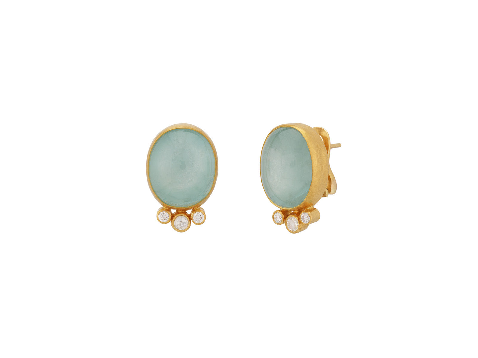 GURHAN Rune Gold Aquamarine Clip Post Stud Earrings