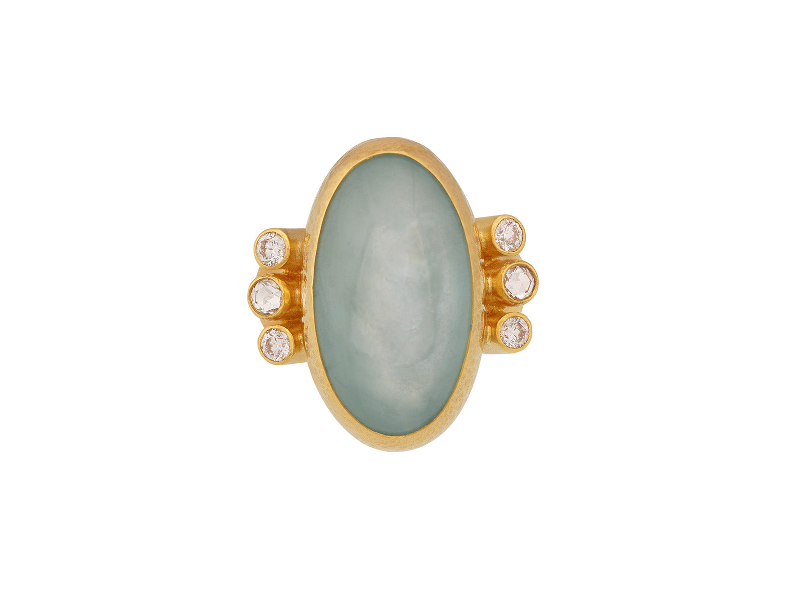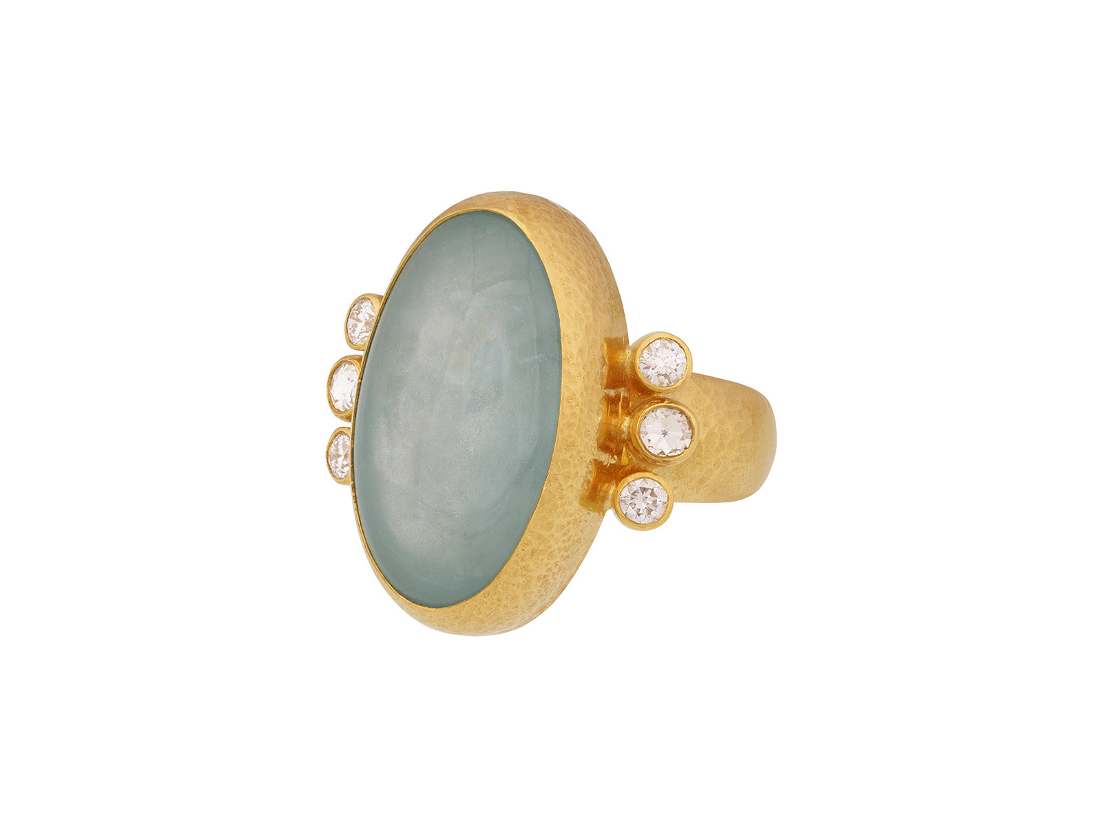 GURHAN Rune Gold Aquamarine Center Stone Cocktail Ring