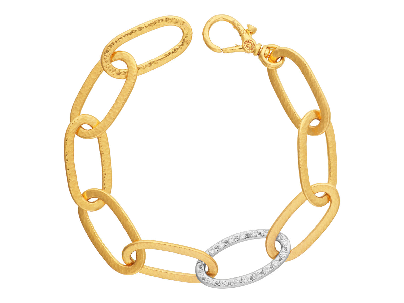 GURHAN Hoopla Gold Diamond Chain Link Bracelet, 20x7mm Flat Oval with Single Pave Link