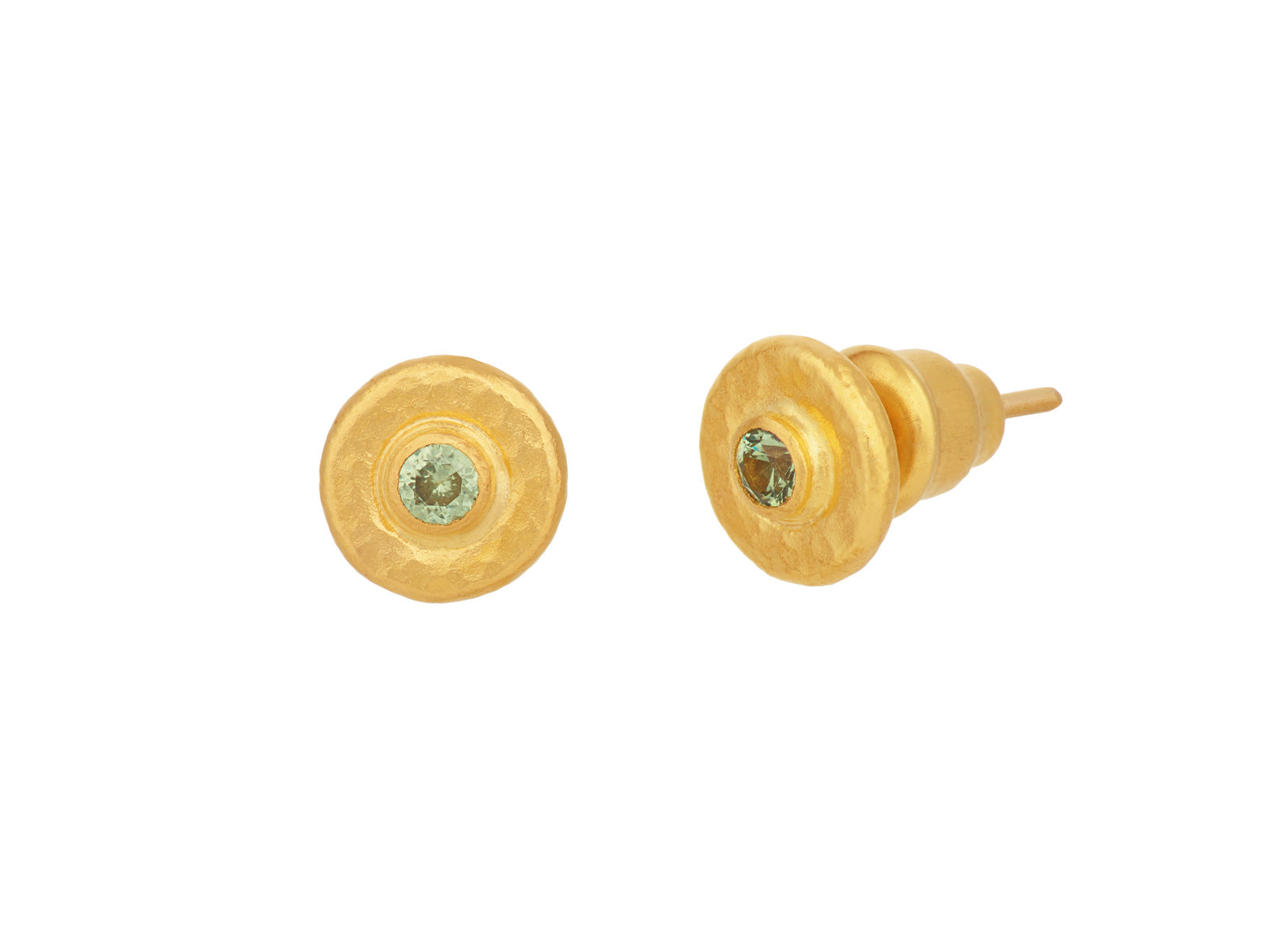 GURHAN Droplet Gold Garnet Stud Earrings, 3mm Stone set in Wide Frame