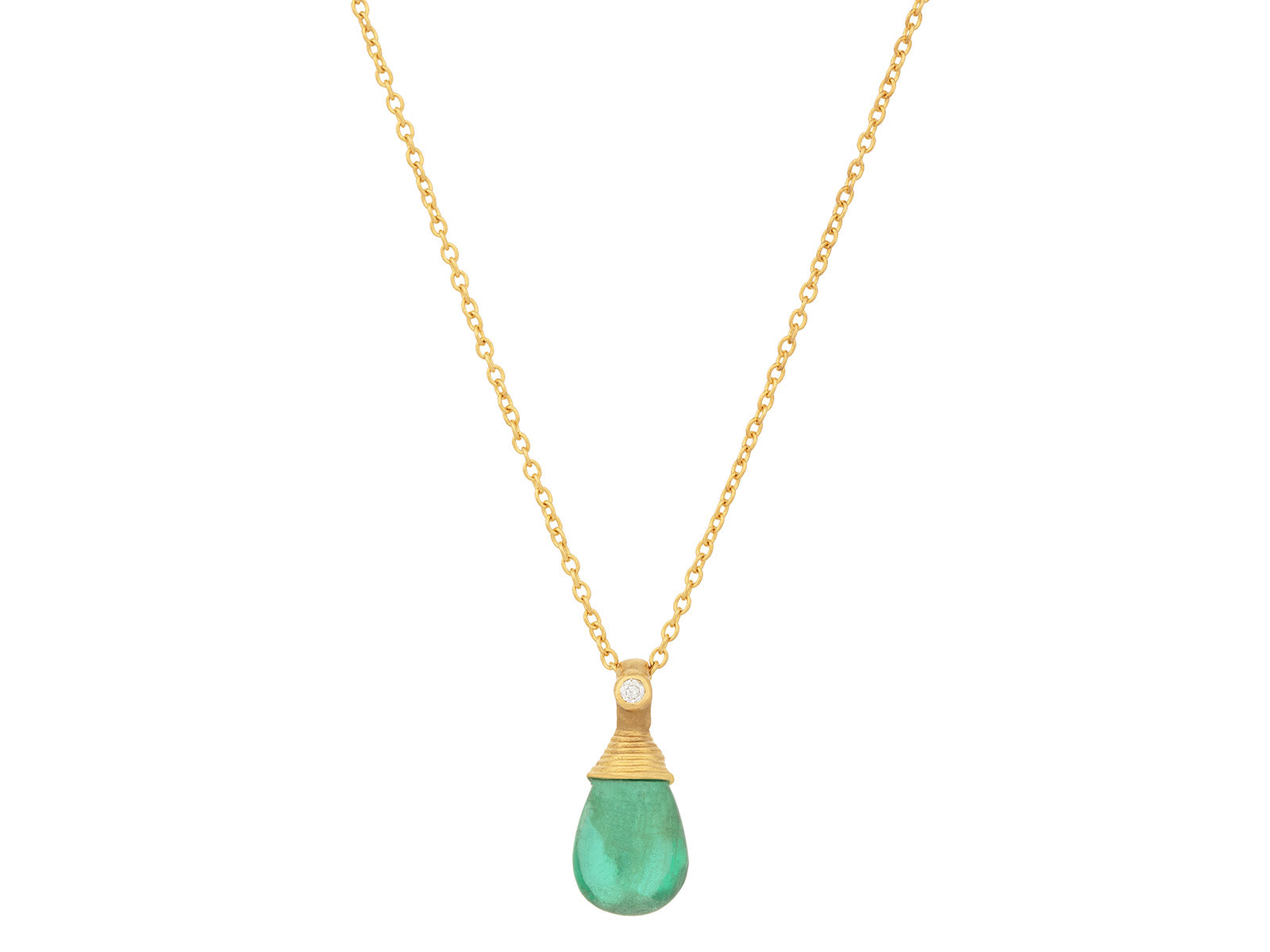 GURHAN Crown Gold Emerald Pendant Necklace, 10x5mm Teardrop