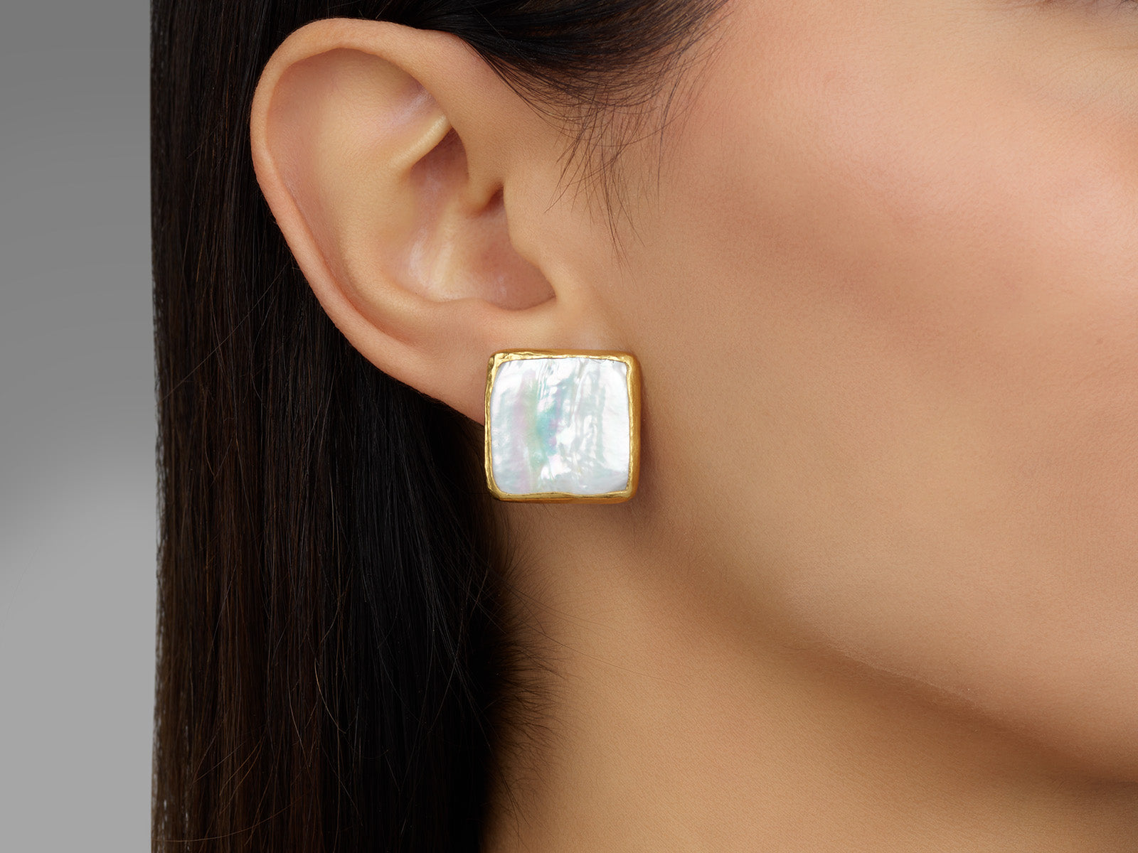 GURHAN Oyster Gold Pearl Clip Post Stud Earrings