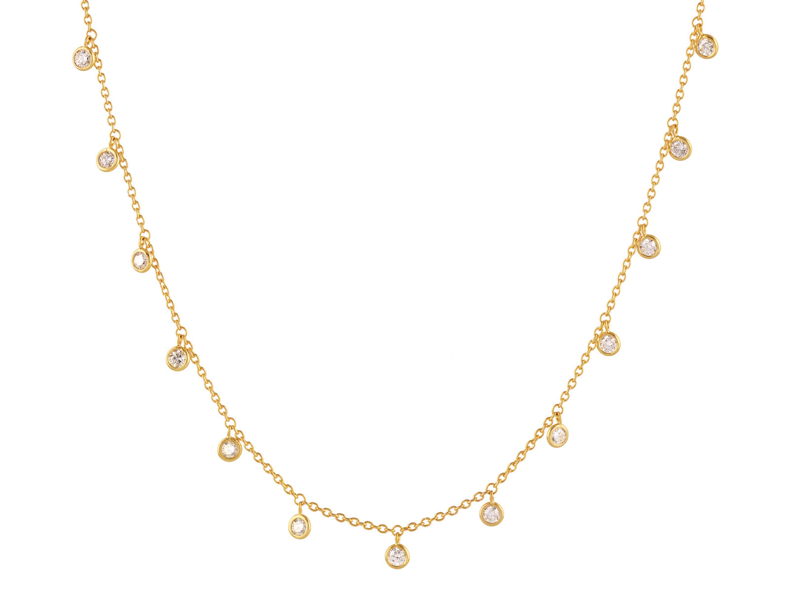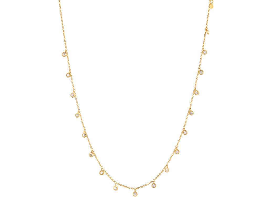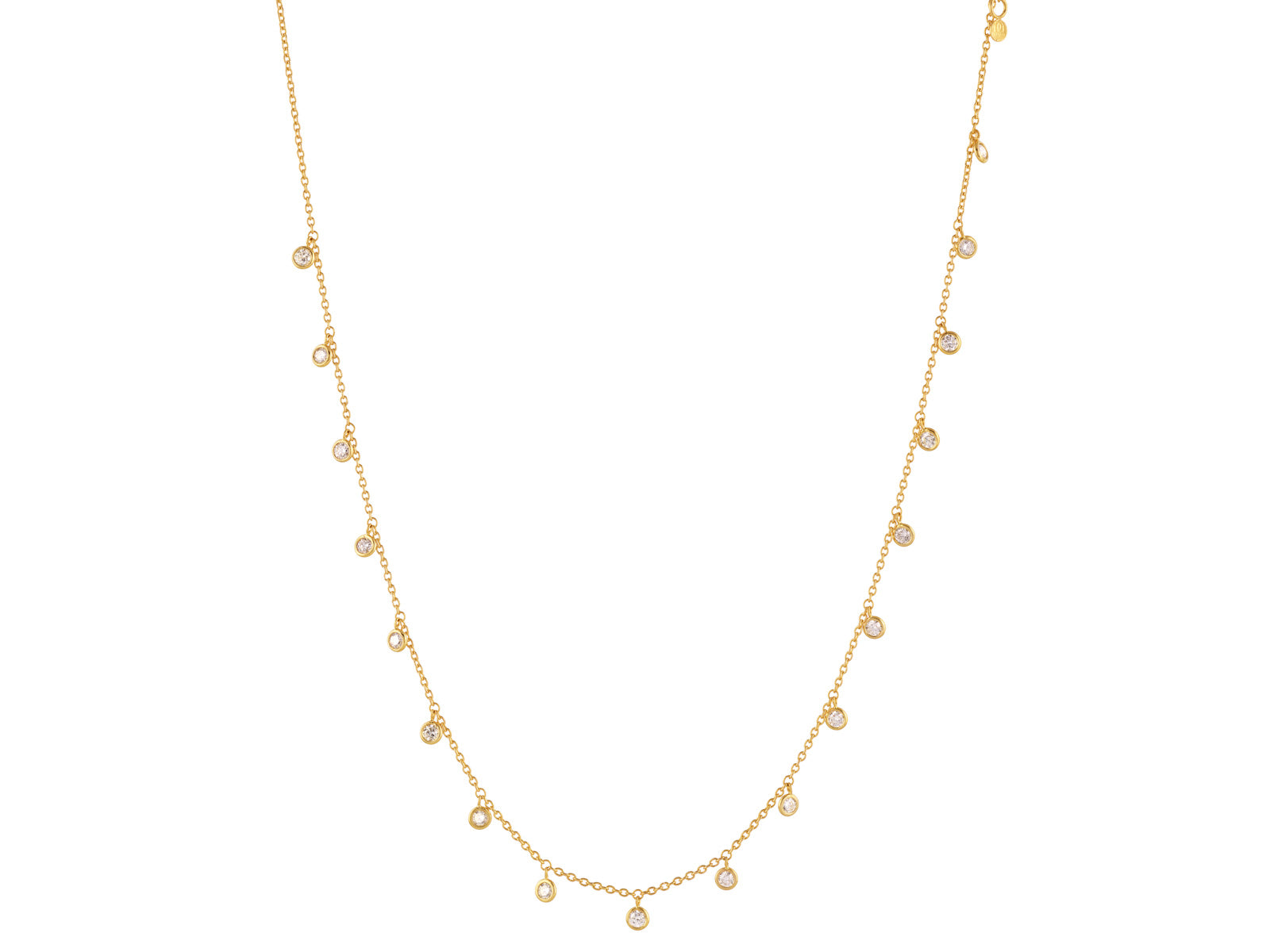 GURHAN Dew Gold Diamond Short Necklace, Thin Chain with Dangling Drops