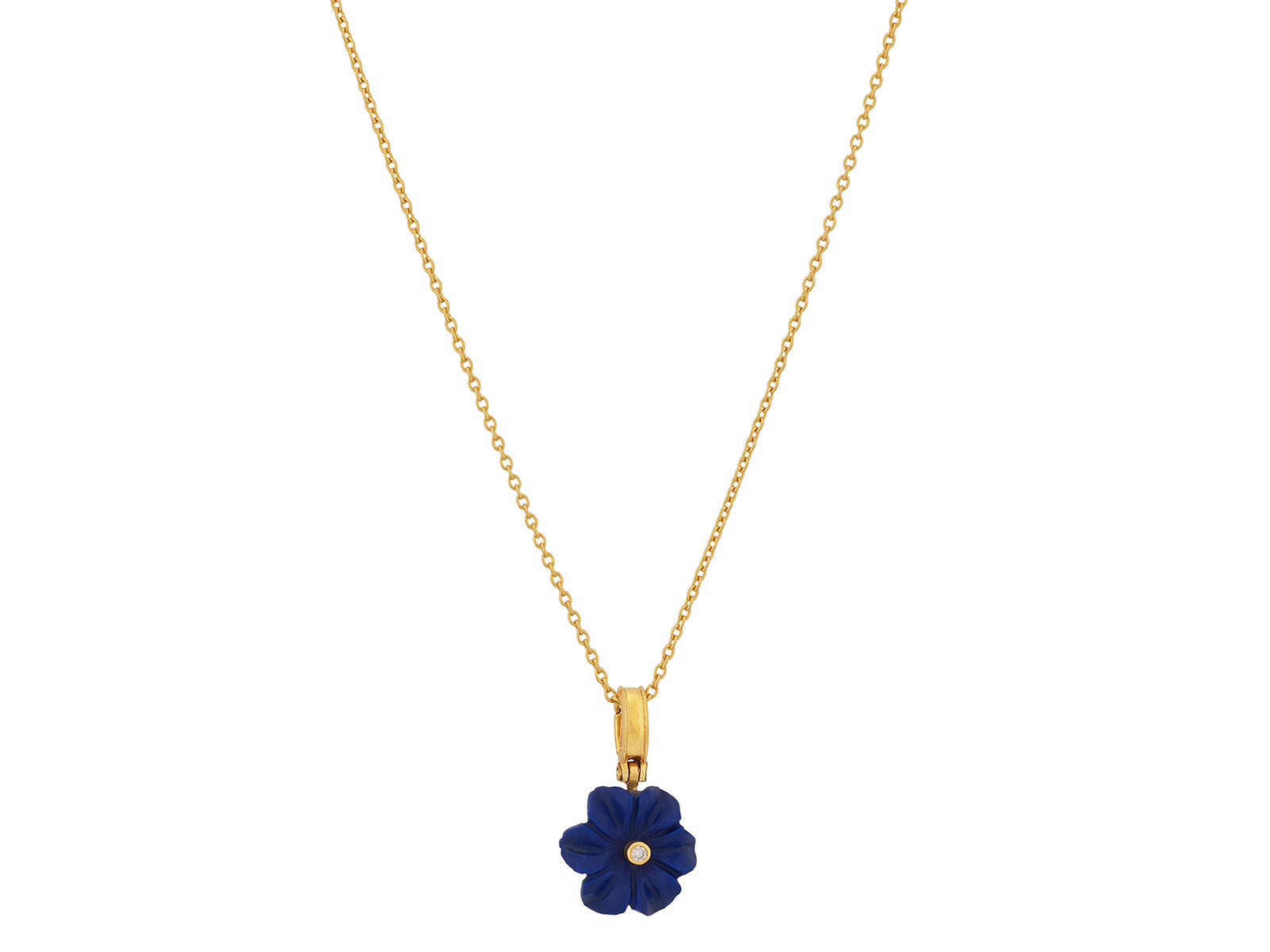 GURHAN Rune 24K Gold Lapis Pendant Necklace, 12mm Carved Flower Lapis
