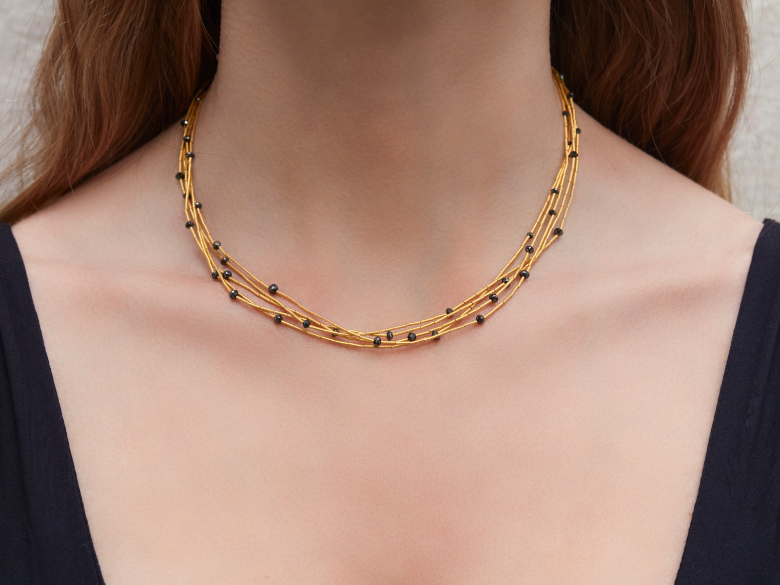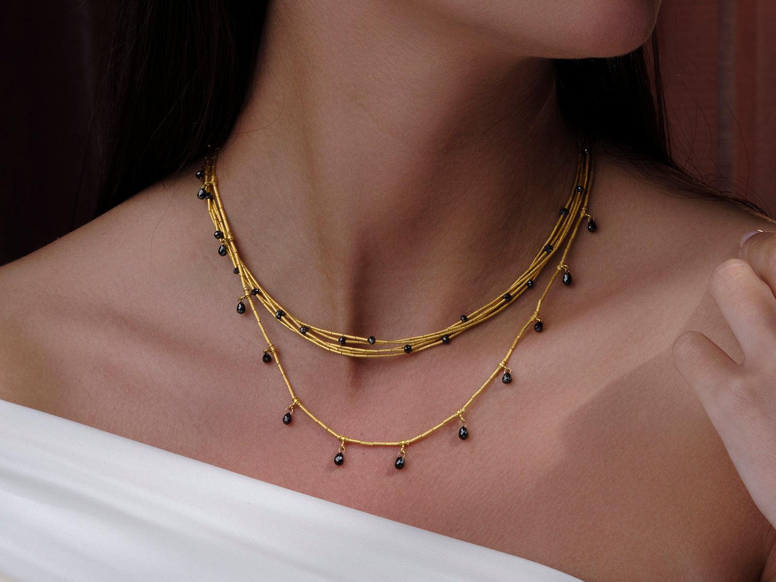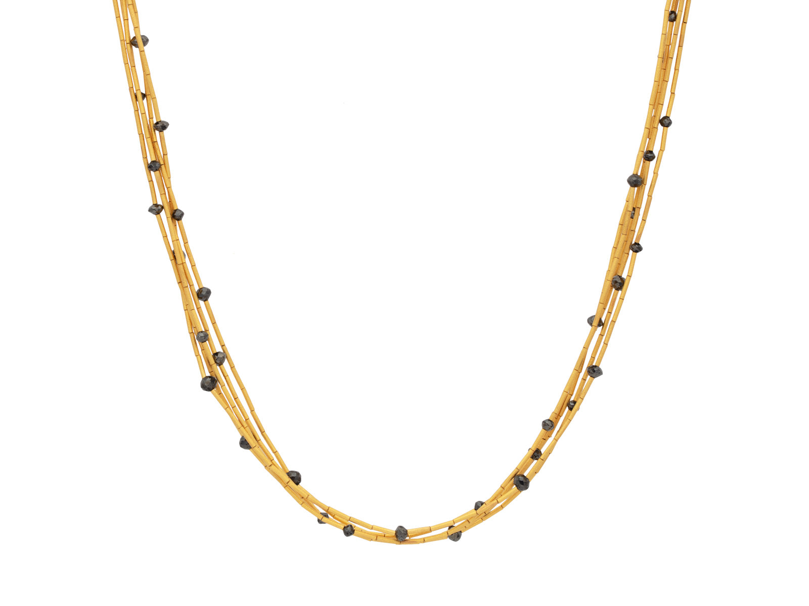 GURHAN Rain 24K Gold Black Diamond Single-Strand Beaded Necklace