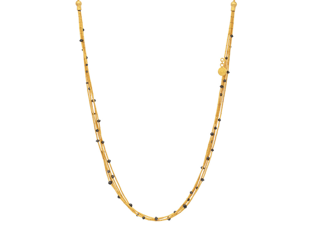 GURHAN Rain Gold Black Diamond Multi-Strand Beaded Short Necklace, Thin Gold Tubes