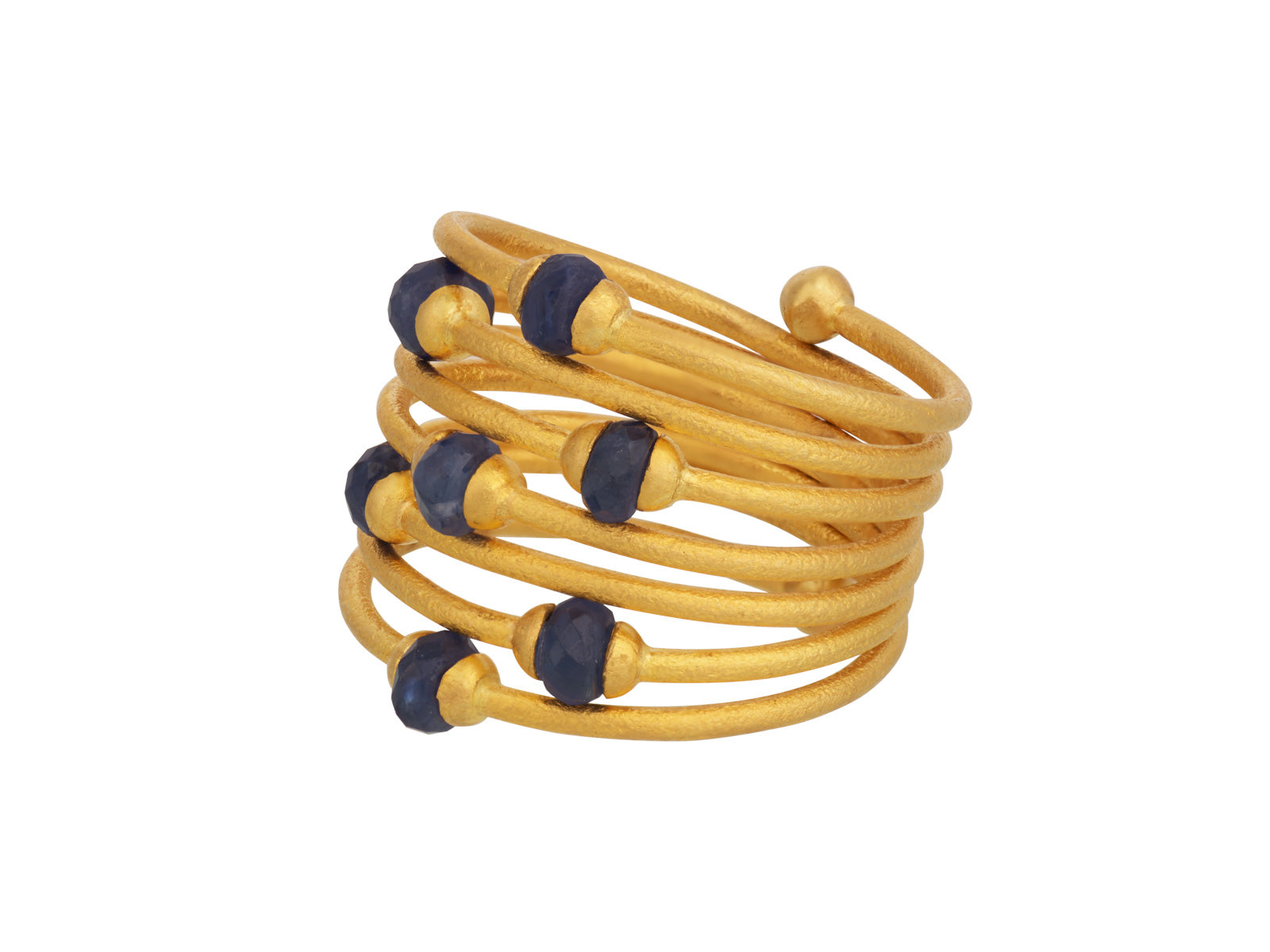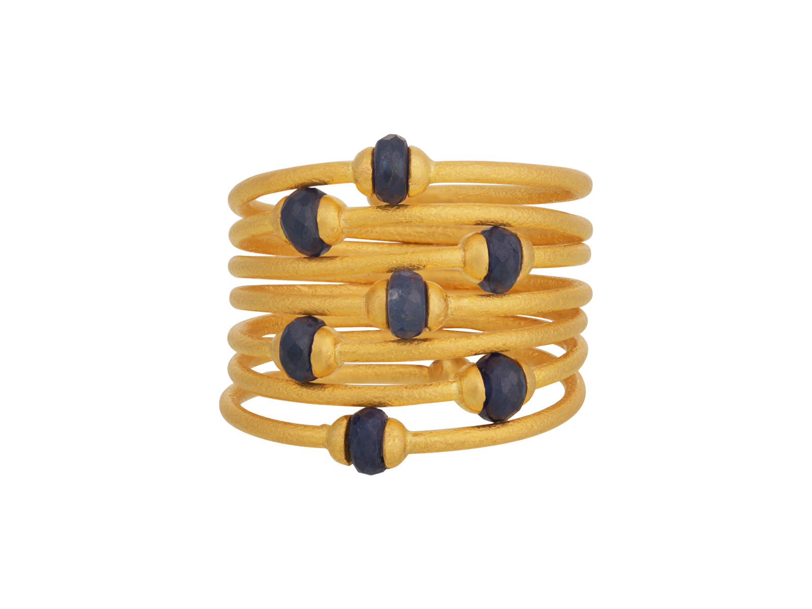 GURHAN Rain Gold Sapphire Band Ring, Mixed Sized Beads