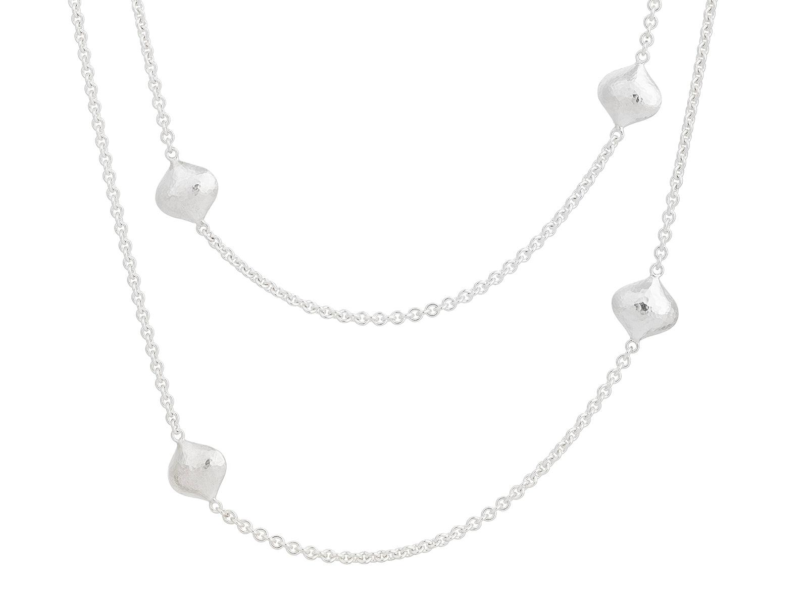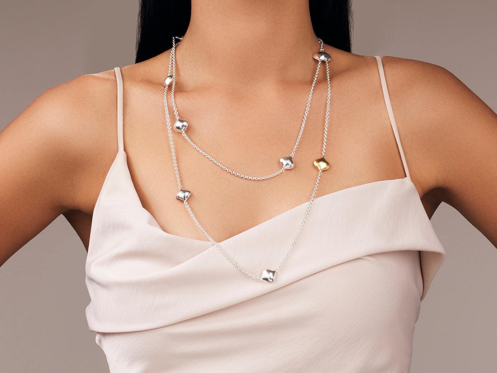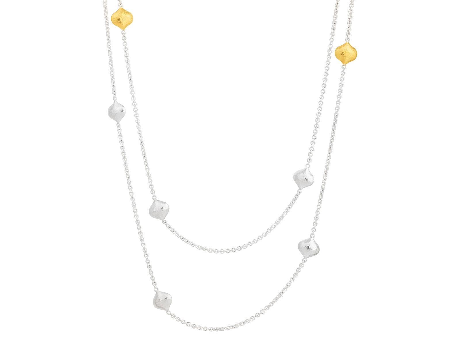 GURHAN Spell Sterling Silver Station Long Necklace, Puffed Shapes on Thin Chain, Gold Accents