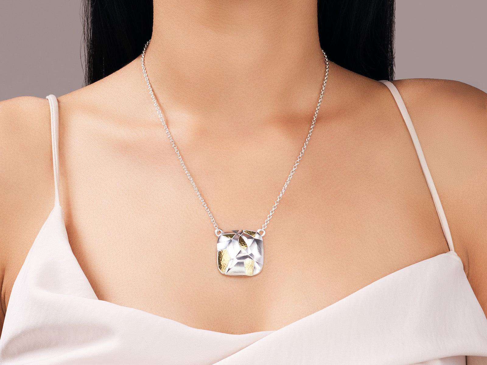 GURHAN Century Sterling Silver Pendant Necklace, Large Square, Gold Accents