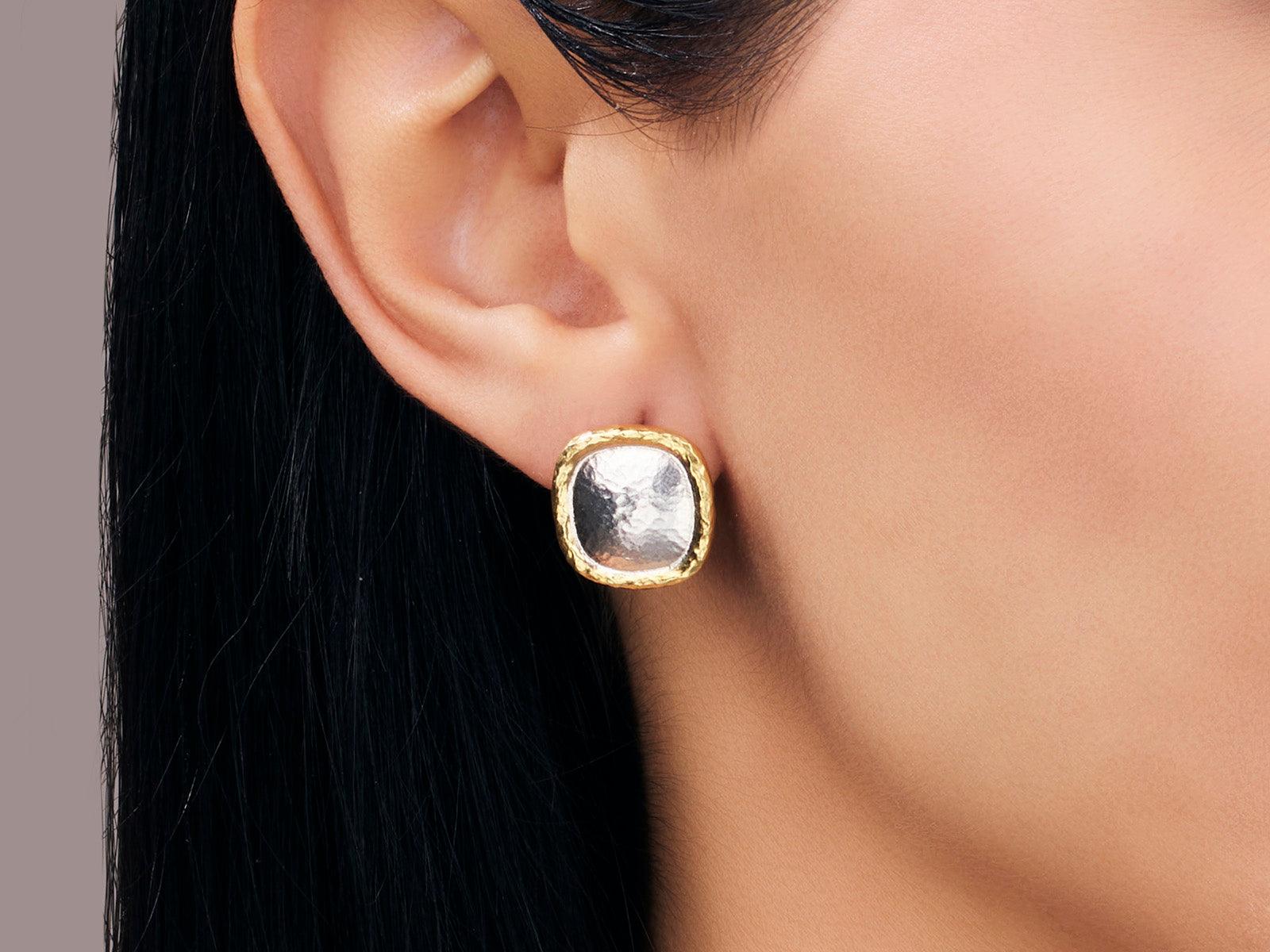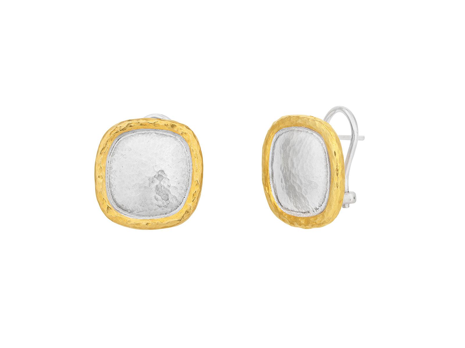 GURHAN Amulet Sterling Silver Stud Earrings, Rounded Square on Clip Post, Gold Accents